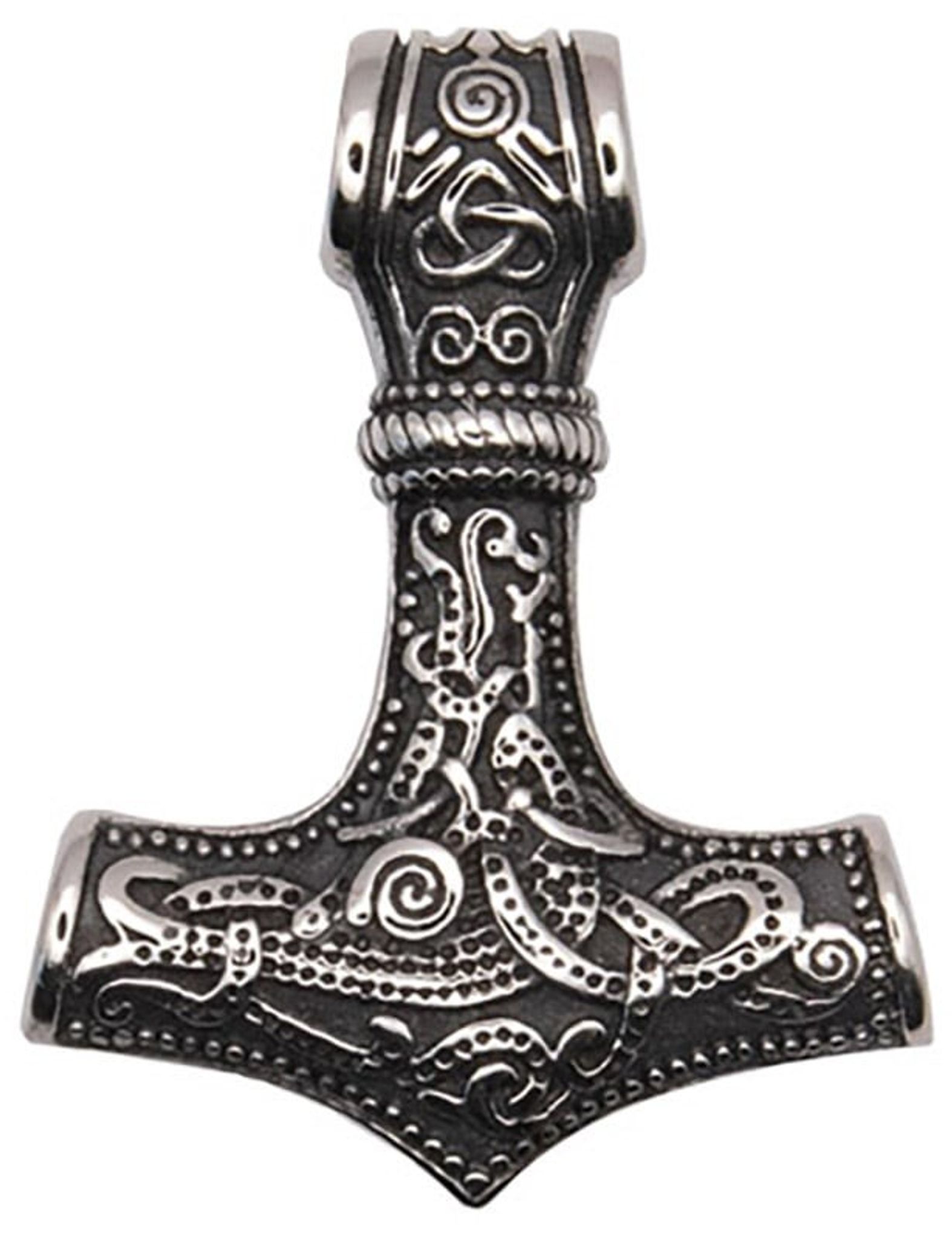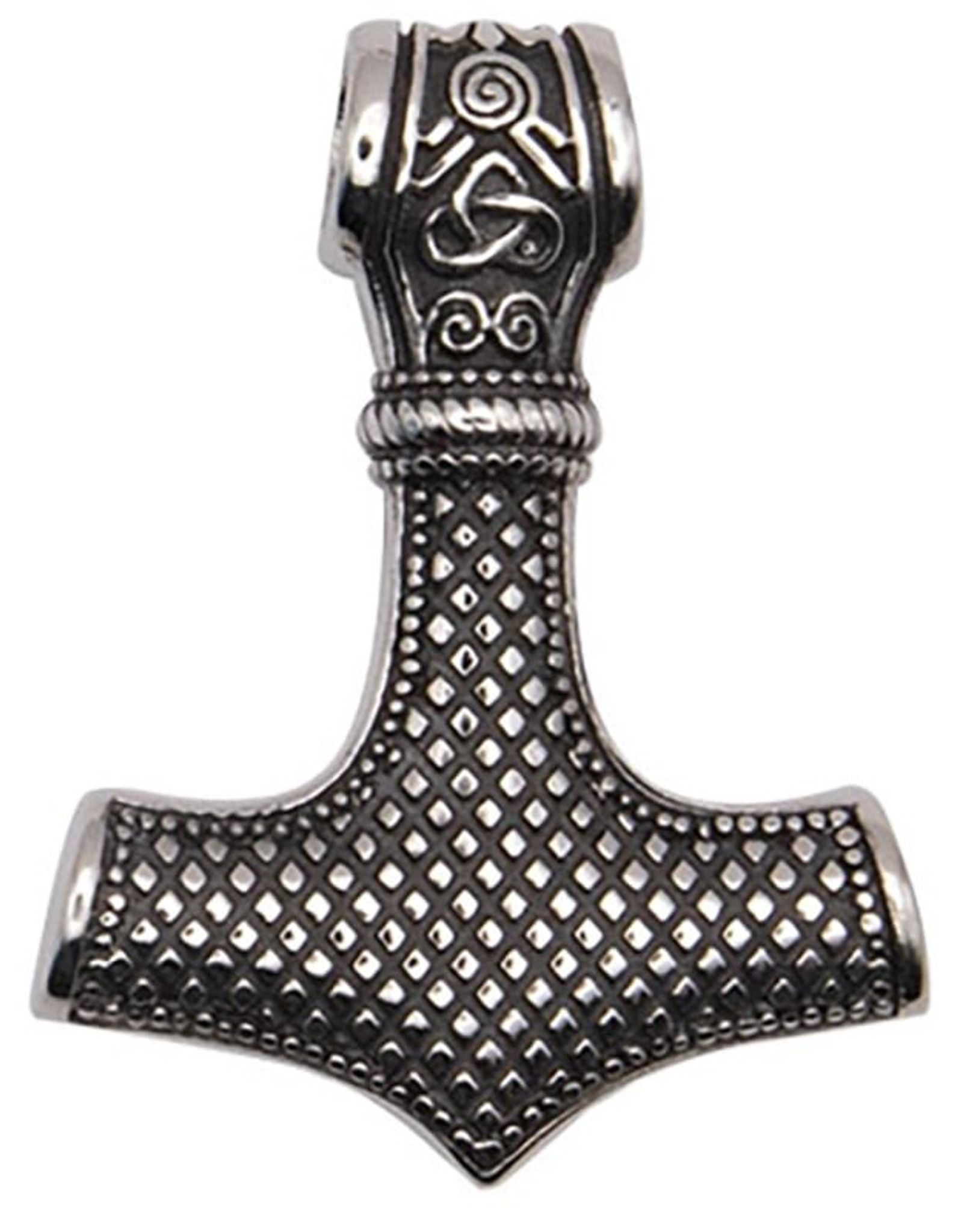 Detta är inte bara ett smycke; det är en symbol för beskydd och kraft. I den fornnordiska mytologin var Mjölner inte bara ett vapen utan även ett redskap för att välsigna och helga. Det silverfärgade stålet reflekterar ljuset och skapar en illusion av liv och rörelse, vilket påminner om Tors orubbliga styrka och hans roll som beskyddare mot det onda. Smyckets detaljerade mönster och ornamenteringar väcker tankar till runor och forntida skrifter, vilket skänker bäraren en känsla av att vara del av en storslagen historia.
