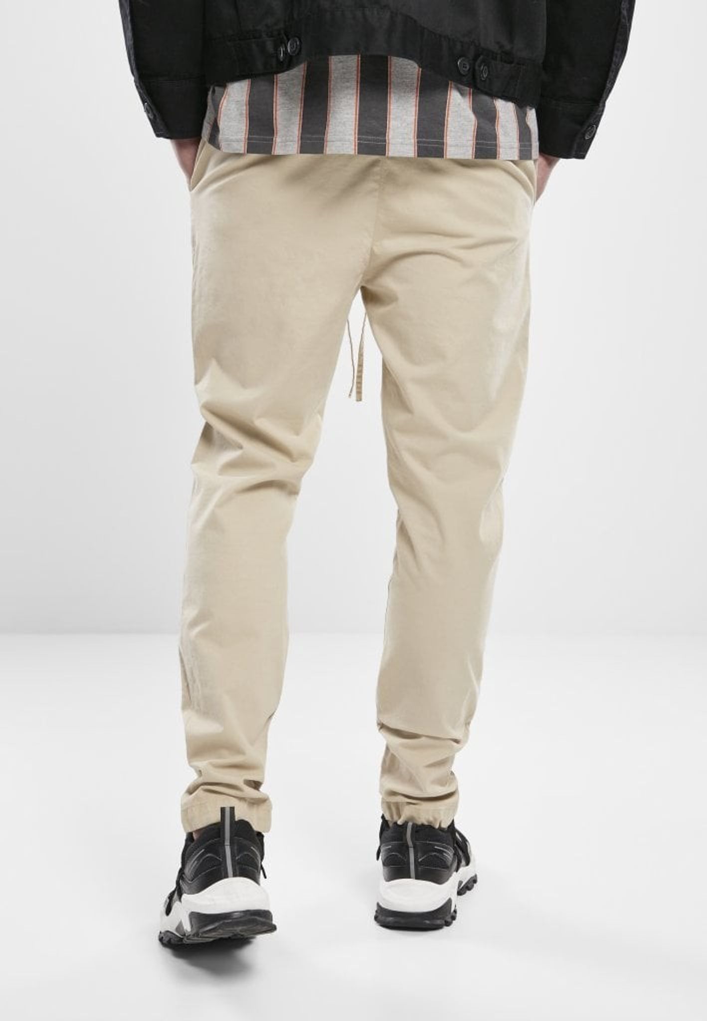 Ett par bekväma och snygga byxor i mjukt men elastiskt bomullstyg. Byxorna har elastisk resår i midjan med snörning.