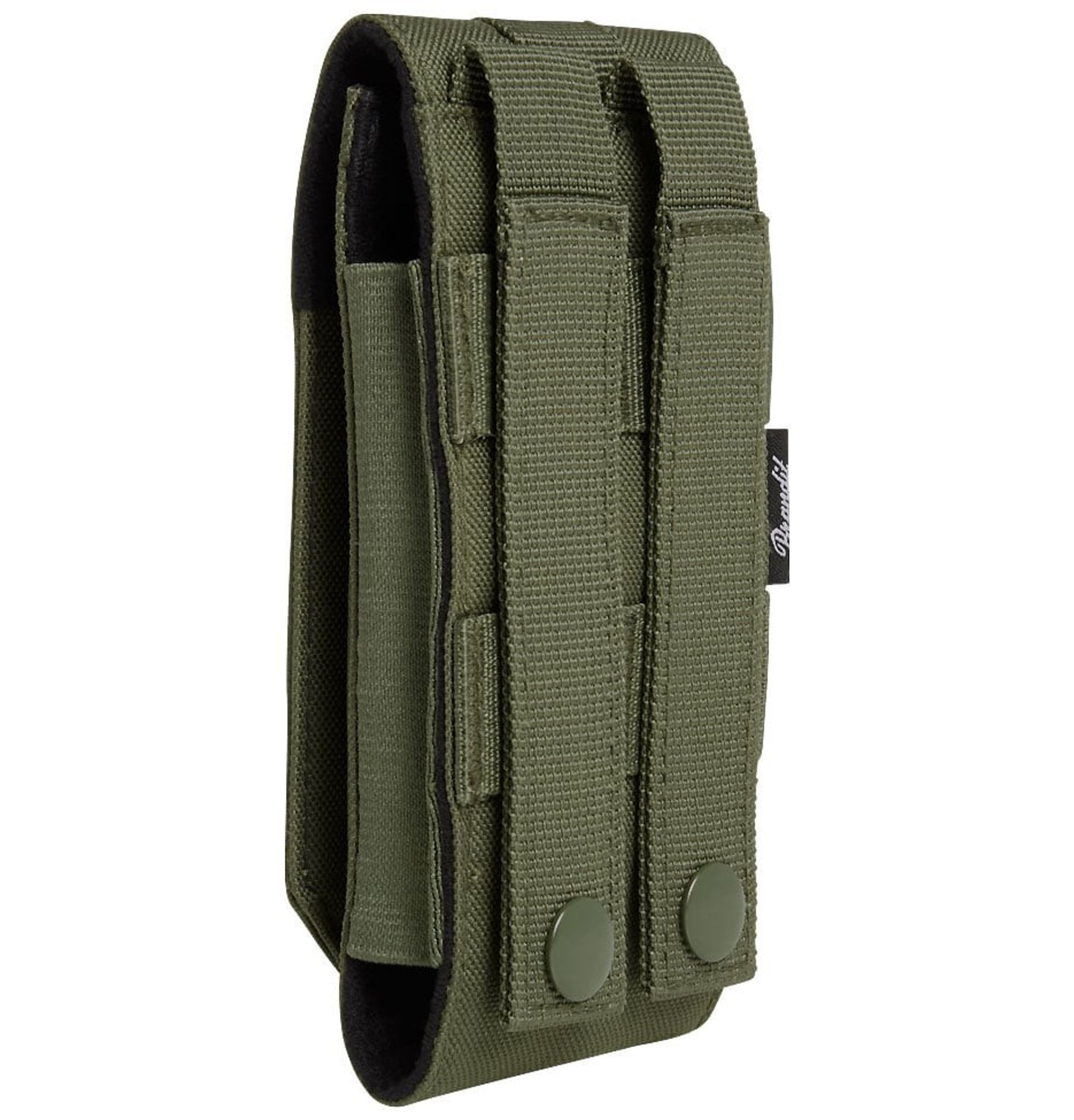 En mobilväska i robust polyestermaterial och med fästöglor för Molle-system.