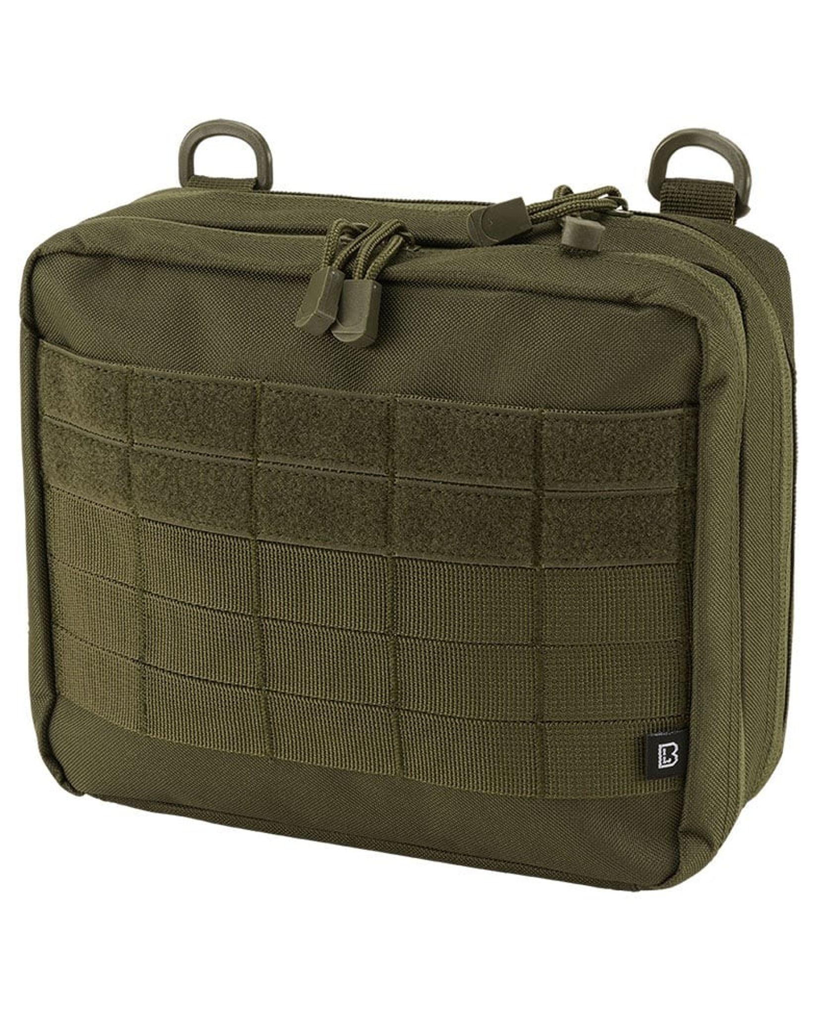MOLLE-öglor med kardborreyta finns på väskan för ytterligare fästalternativ. Dessutom har väskan 2 nätfickor, 2 D-ringar och nyckelringar för att hålla ordning på mindre föremål.