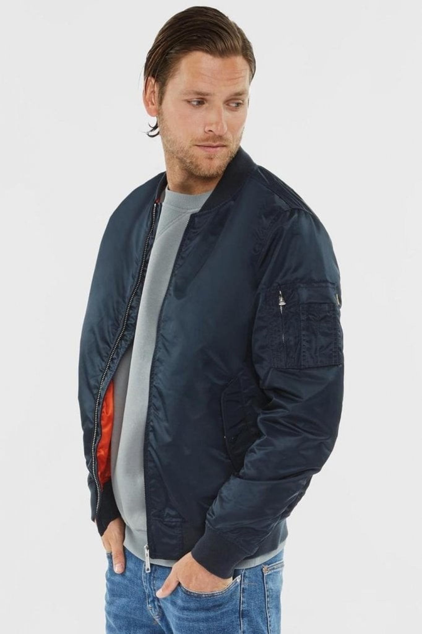 En skön bomberjacka med tunnare stoppning som gör den till en funktionell jacka under större delen av året.