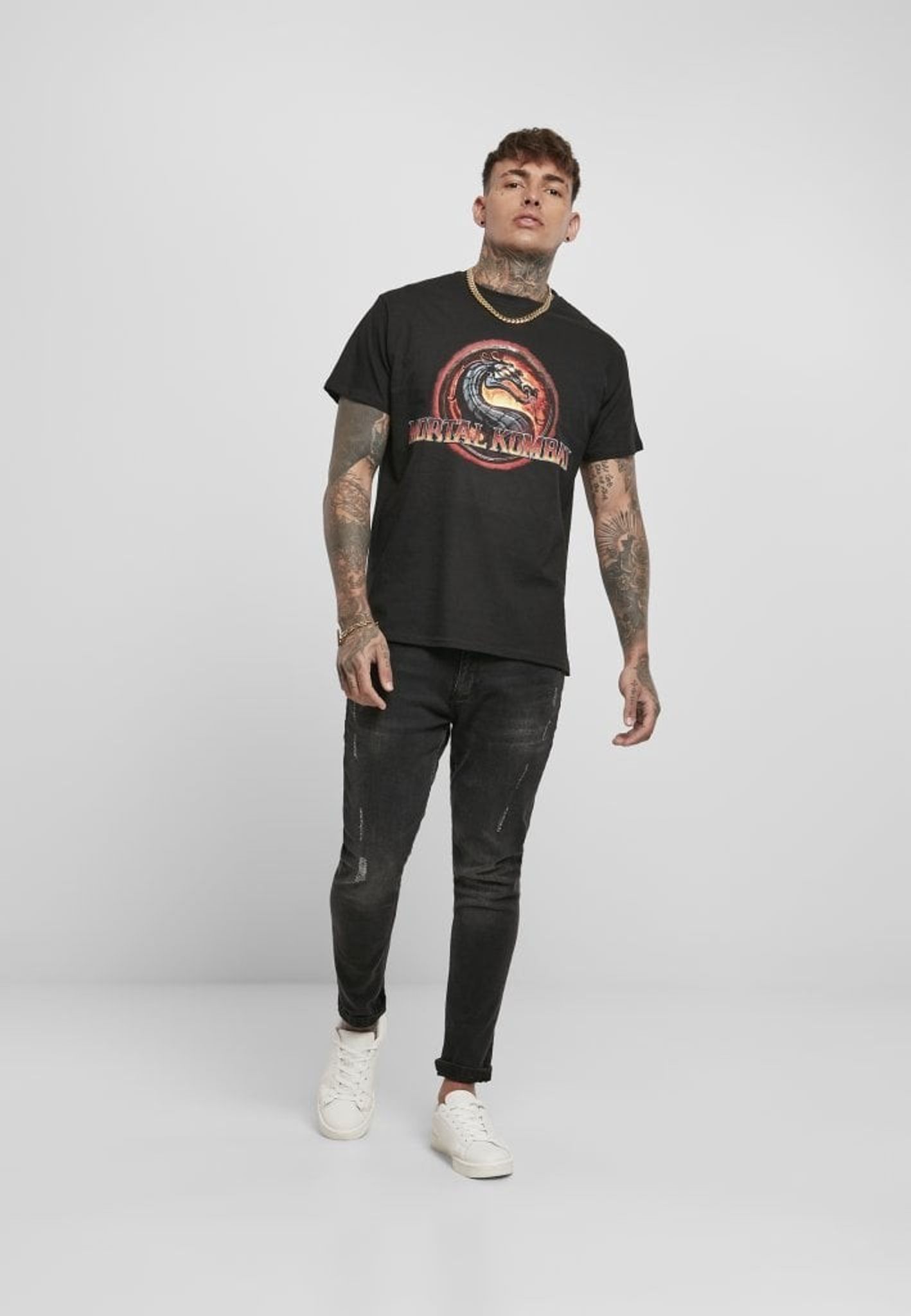 En T-shirt med logotyp från det klassiska Mortal Kombat. En dator- och TV-spelsserie som släpptes först år 1992. Sedan dess har över 20 stycken fightingspel med Mortal Kombat släppts.