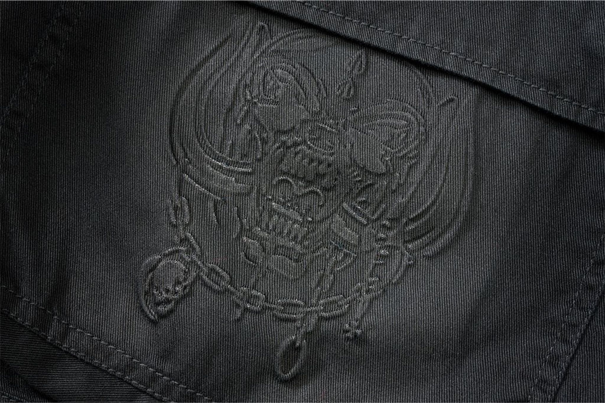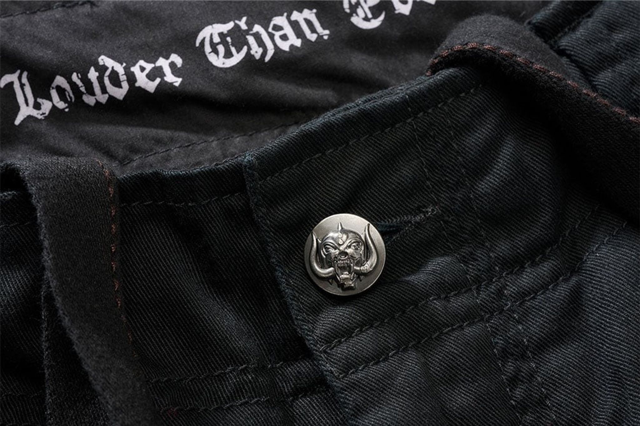 Ett par riktigt tuffa shorts för dig som inte kan få nog av Lemmys hesa stämma i dina öron. På högta benfickan finns Motörheads logotyp broderat och på vänstra benet finns Warpig i 3D-print, vilket innebär att Warpig är utpressat ur tyget och sticker liksom ut från tyget.