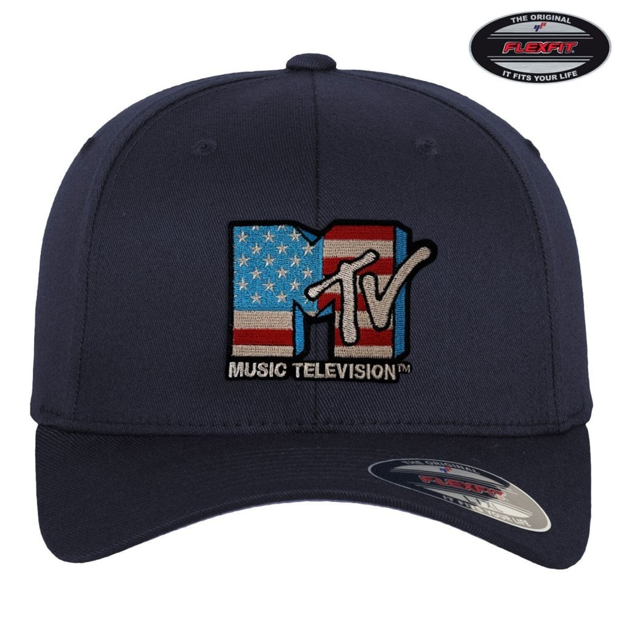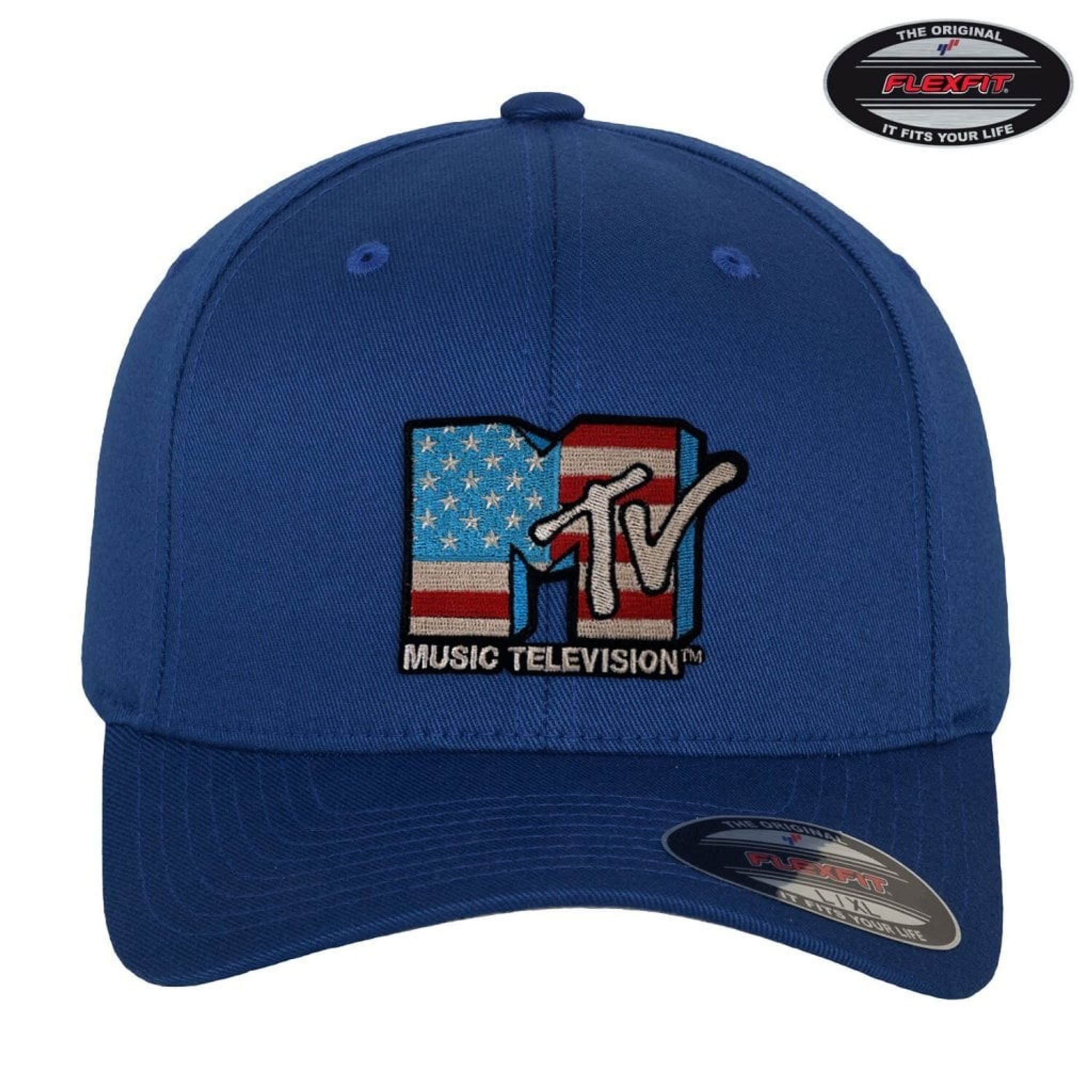 En skön Flexfit-keps med elastiska muddar runtom. Kepsen har den klassiska musikkanalen MTV's logotyp broderad över fronten. Här med det stora M:et i amerikanska flaggan.
