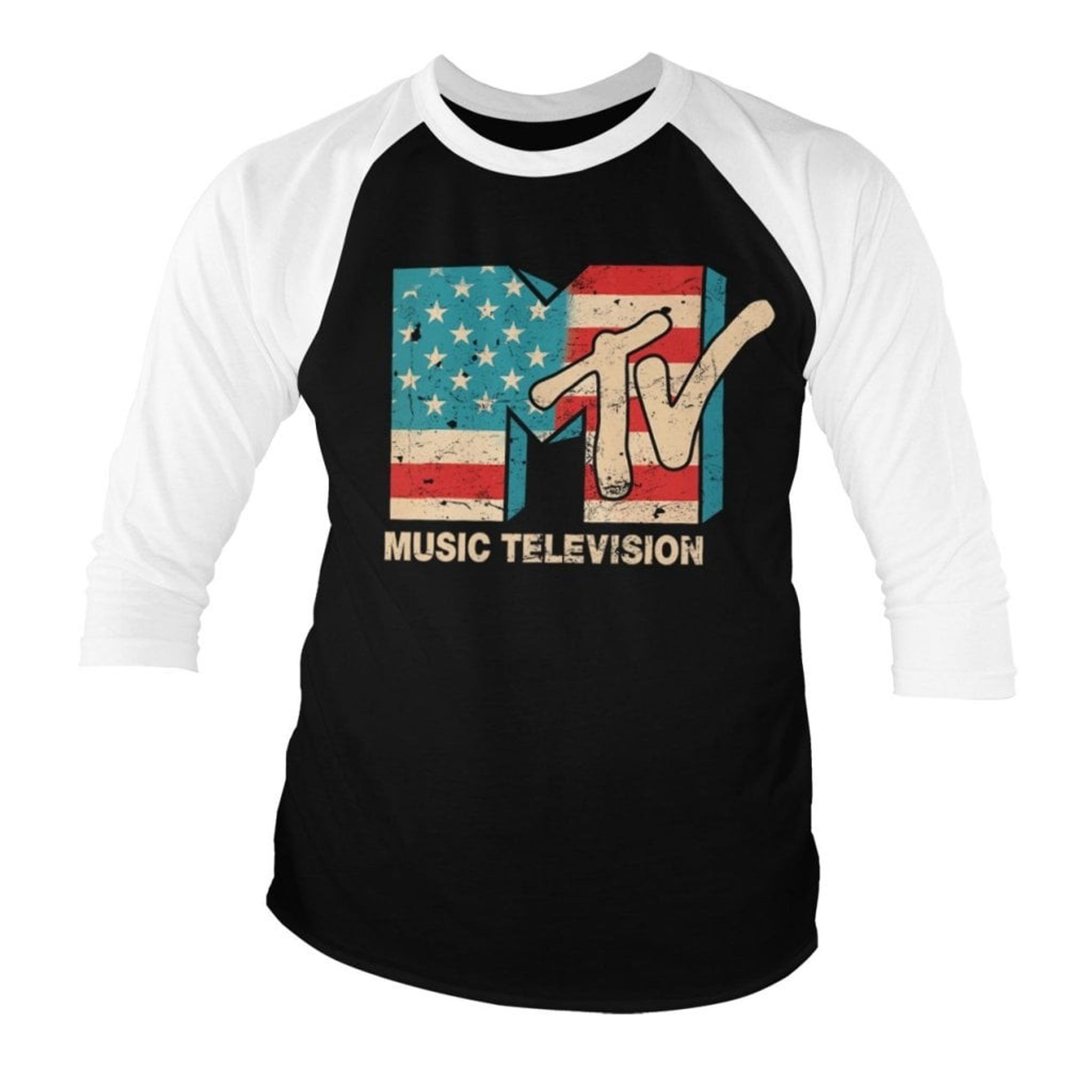 Är du redo att rocka som en sann MTV-patriot? Då är denna Baseball Tee med 3/4 långa ärmar det perfekta plagget för dig! Med den ikoniska MTV-logotypen smält samman med den amerikanska flaggans färger och mönster, kommer du garanterat att sticka ut från mängden.