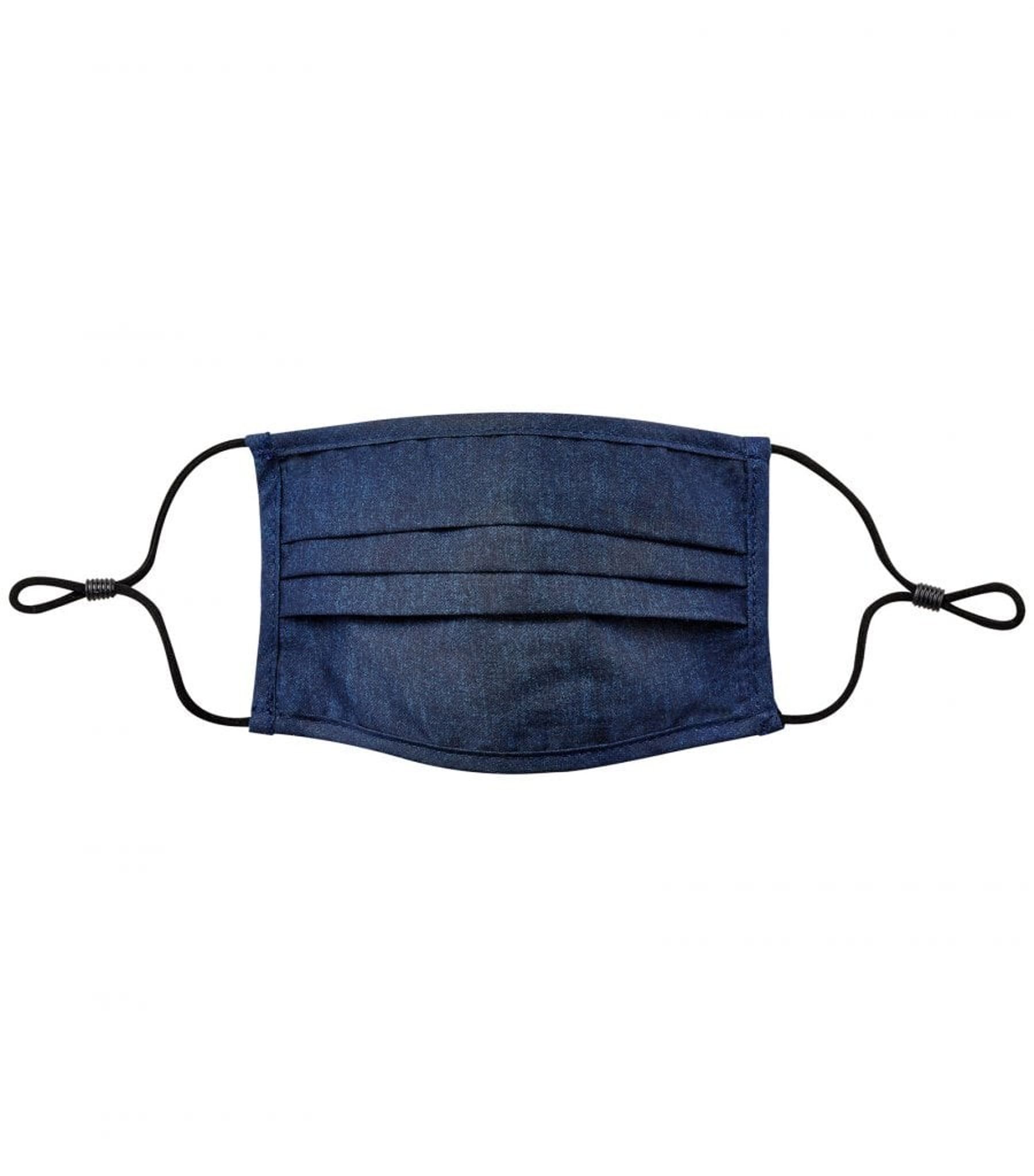 Ett munskydd i jeansliknande tyg. Munskyddet är ViralOff-behandlat. ViralOff är en antimikrobiell behandling som inaktiverar patogener och skyddar produkten från kontaminering samtidigt som produkten förblir fräsch och hudvänlig.