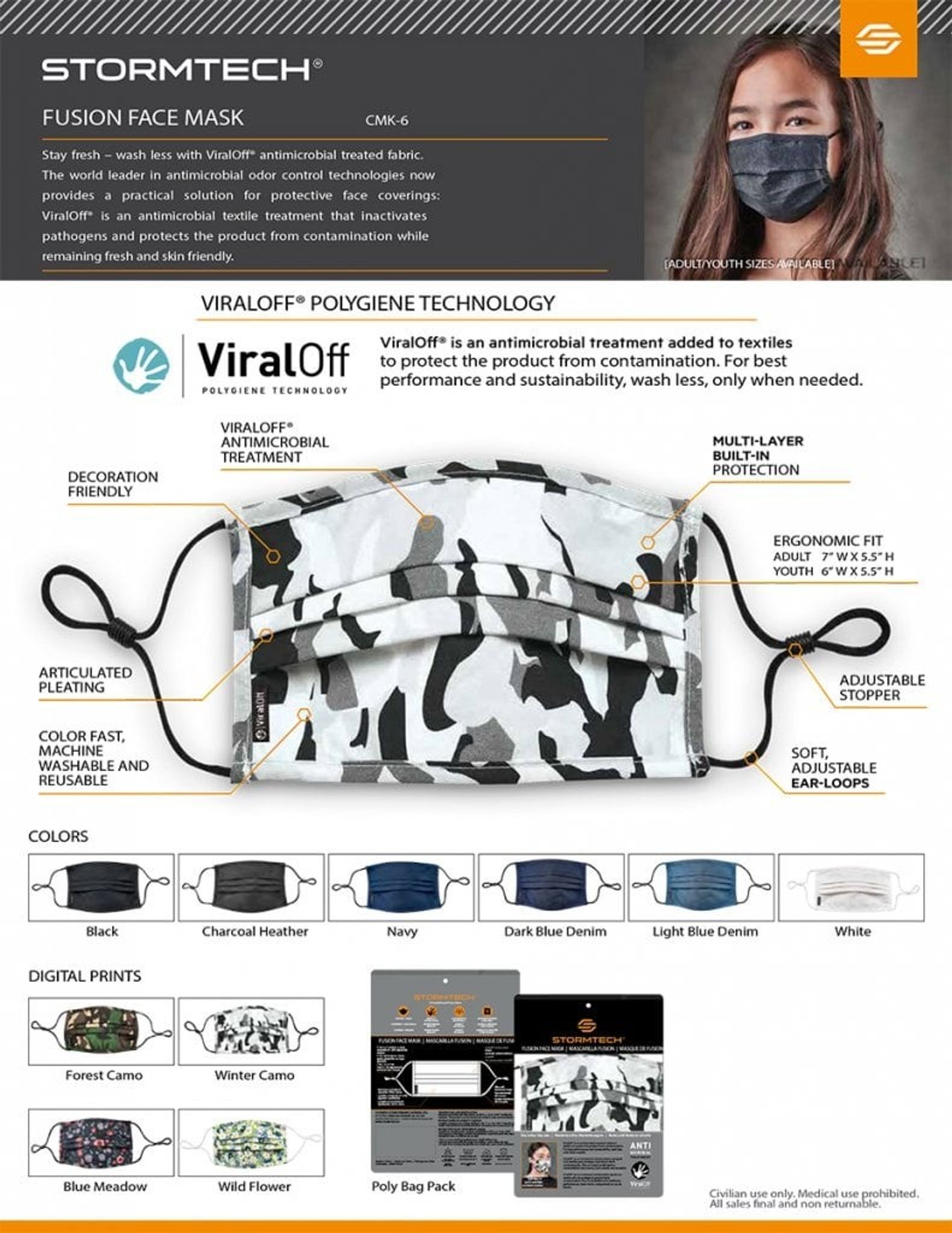 Ett munskydd i snygg kamouflage och ett högkvalitativt tyg. Tyget är antimikrobiellt behandlat. ViralOff är en antimikrobiell textilbehandling som inaktiverar paogener och skyddar munskyddet från kontaminering samtidigt som munskyddet förblir fräscht och hudvänligt.