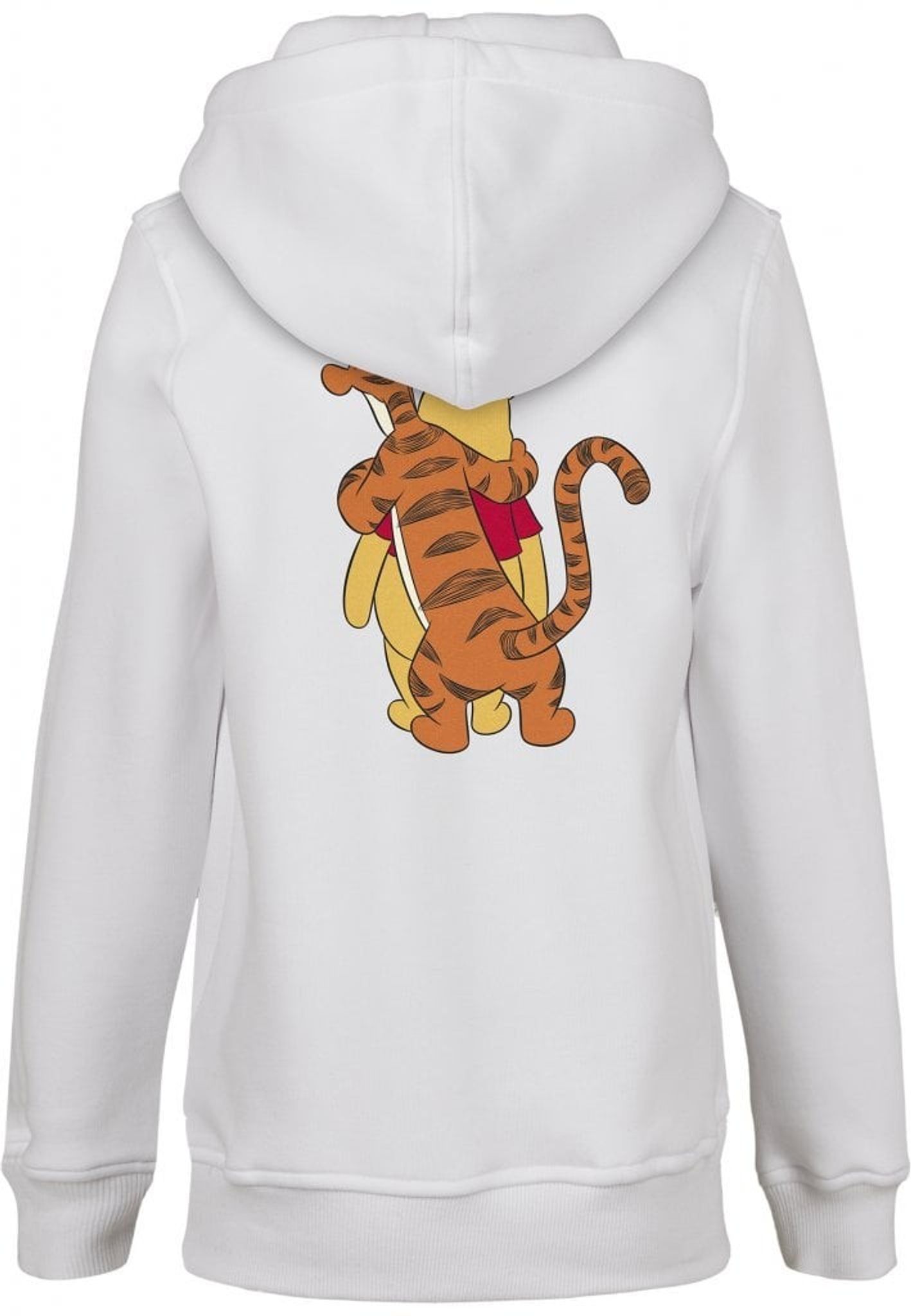 En vit hoodie i barnstorlekar och med den dumme lille björnen - Nalle Puh tillsammans med hans tigerkompis Tiger.