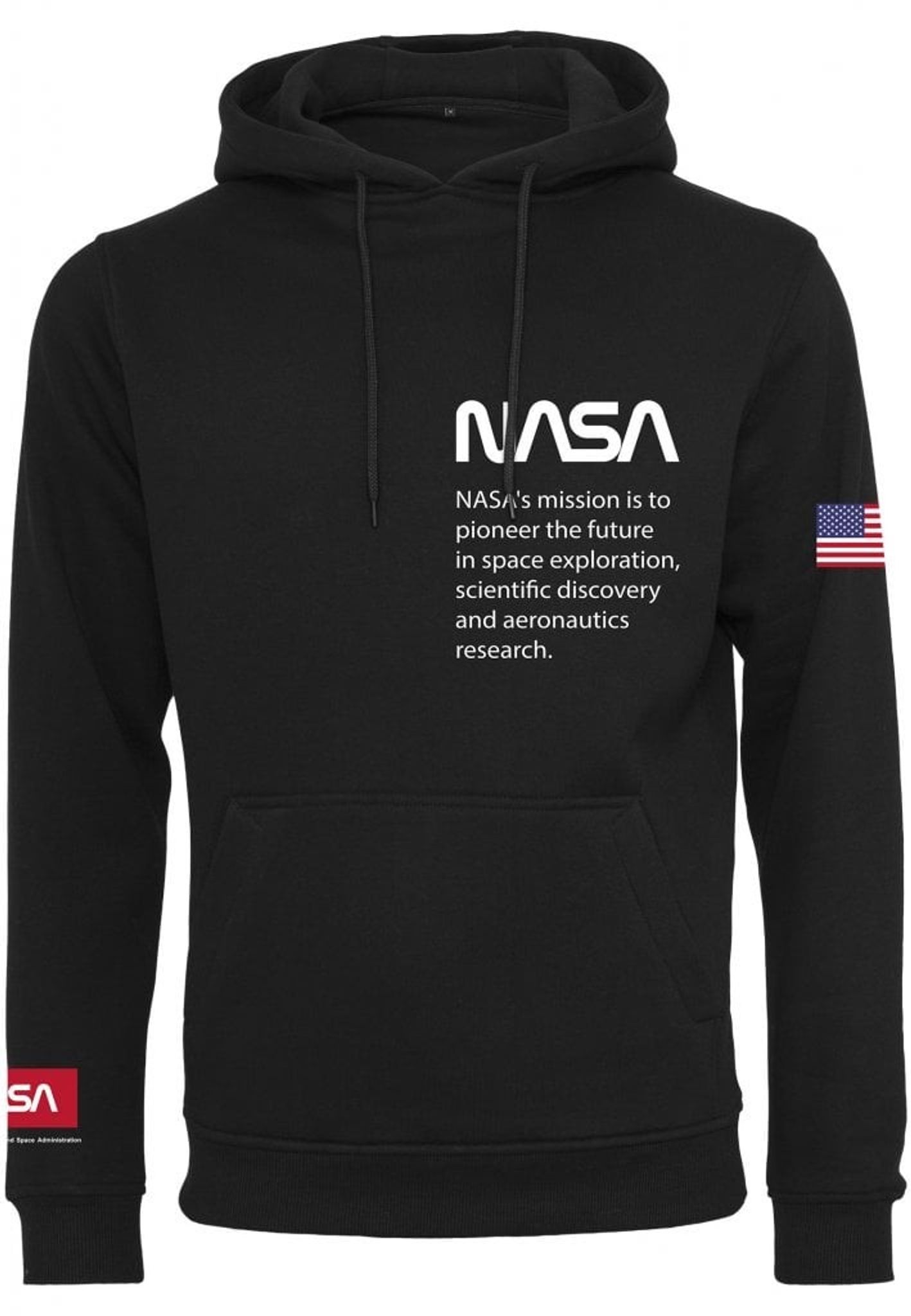 Stilren svart hoodie med flera olika tryck från den amerikanska federala myndigheten NASA.