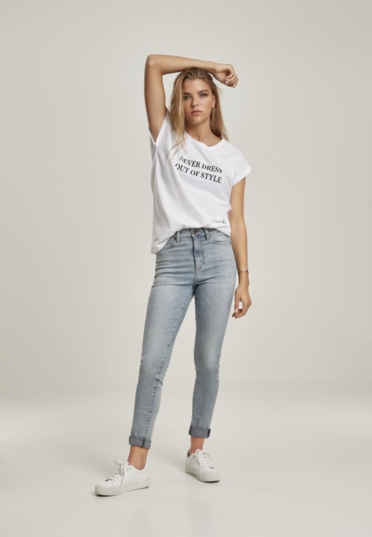 Never Out Of Style Tee dam. En härlig lite mer löstsittande T-shirt med trycket "Never Dress out of style". Material: 100% bomull.