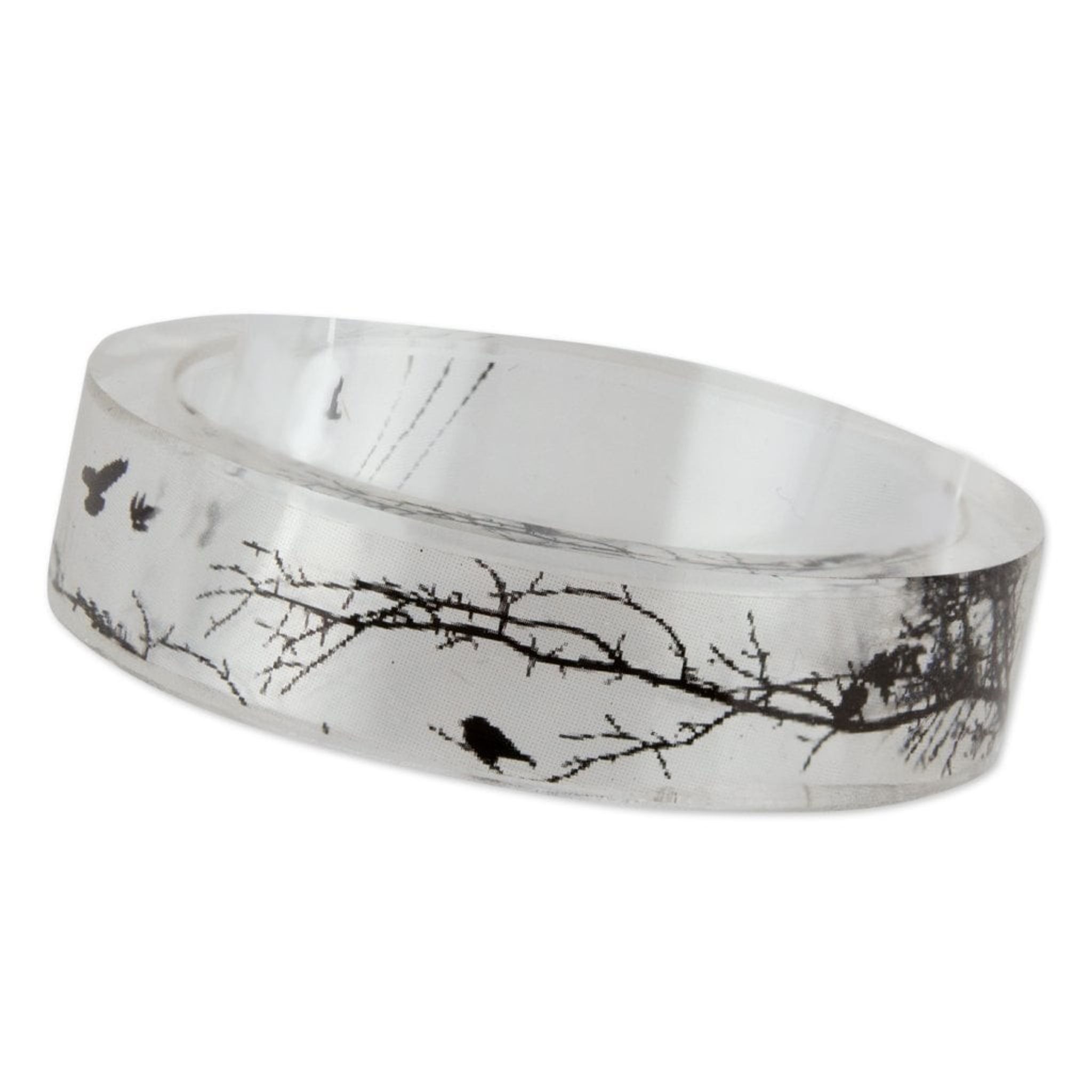 En fantastisk ring med skuggor av grenar ifrån en ödslig skog och kråkor som vakar på grenarna.