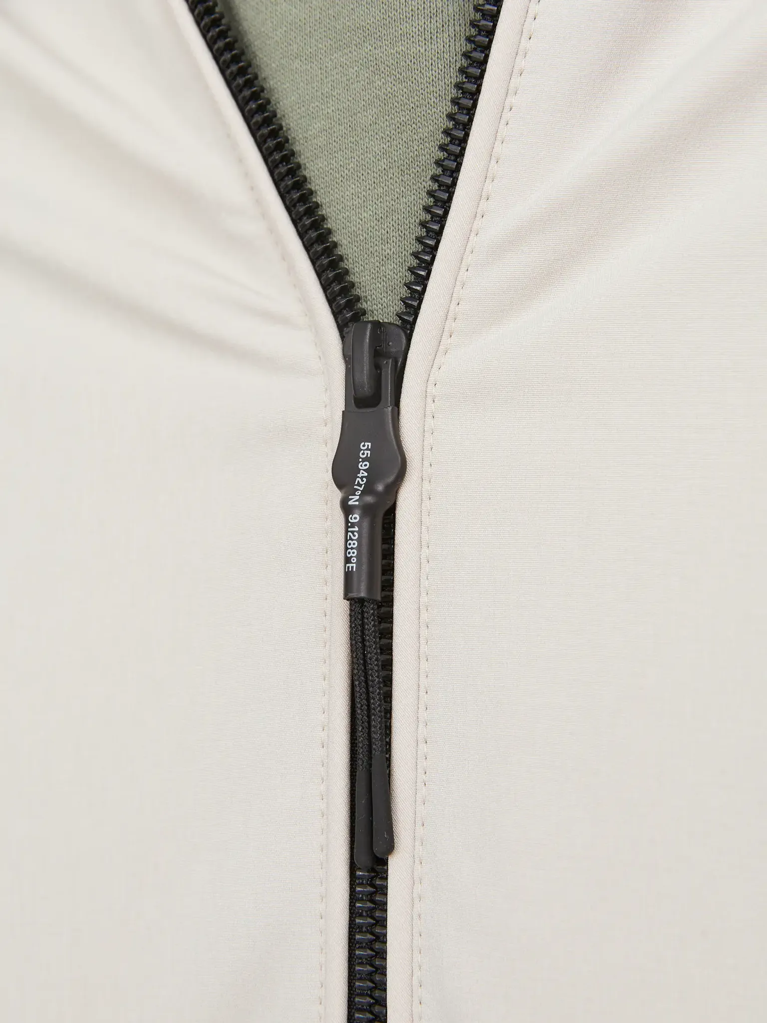 Med långa ärmar och ribbade cuffs erbjuder jackan en bekväm och säker passform. Stängningen sker med en praktisk dragkedja, vilket gör det enkelt att ta på och av jackan.
