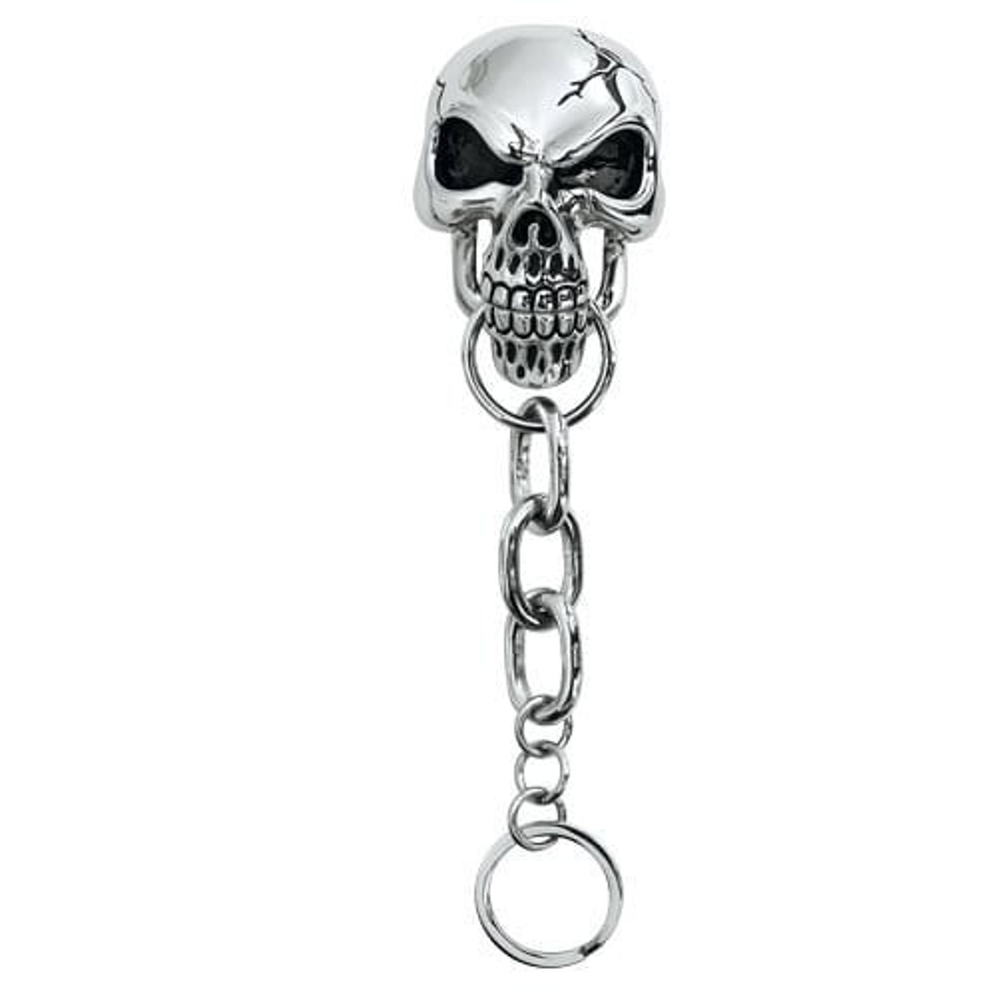 Skallens tänder kan öppnas med en fjäder och kedjan kan därmed tas bort från skallen.