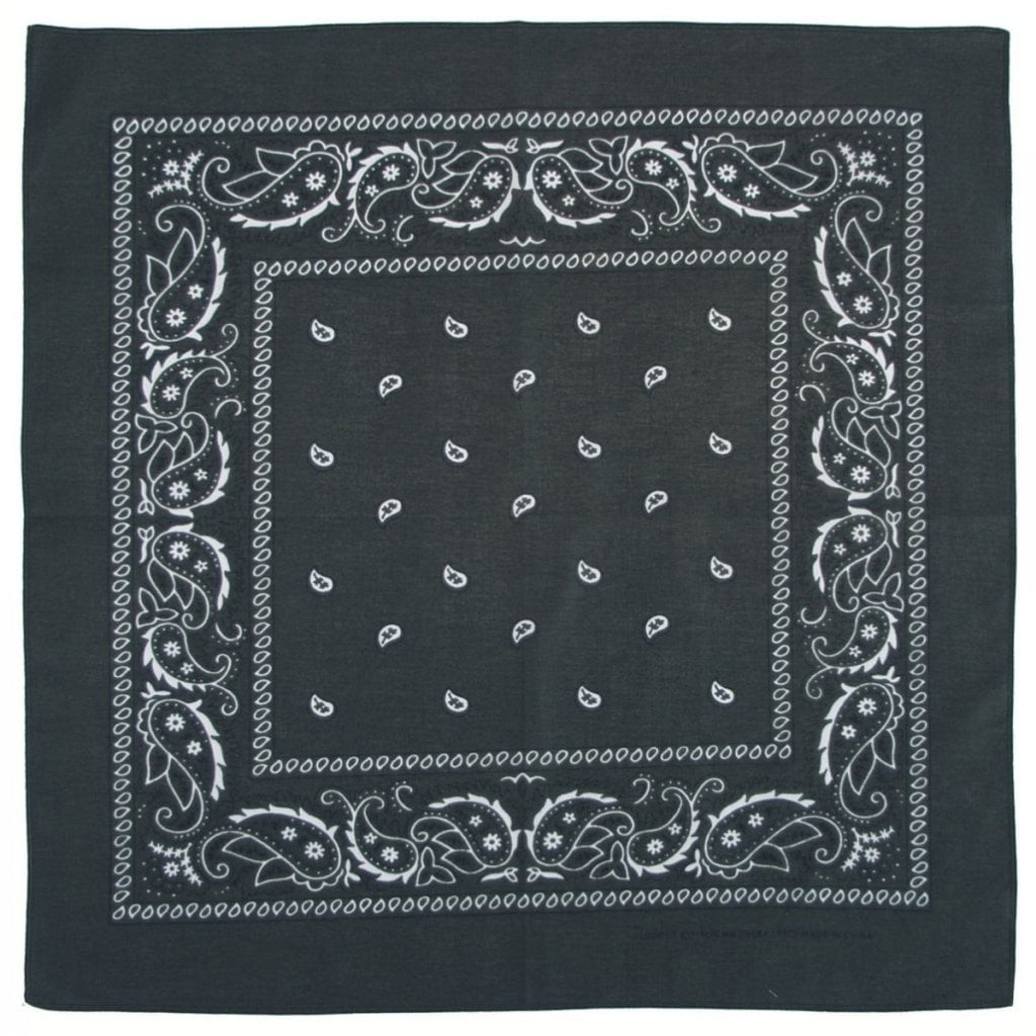 En klassisk bandana i mörkt olivgrön nyans och svart mönster med vit fyllning.