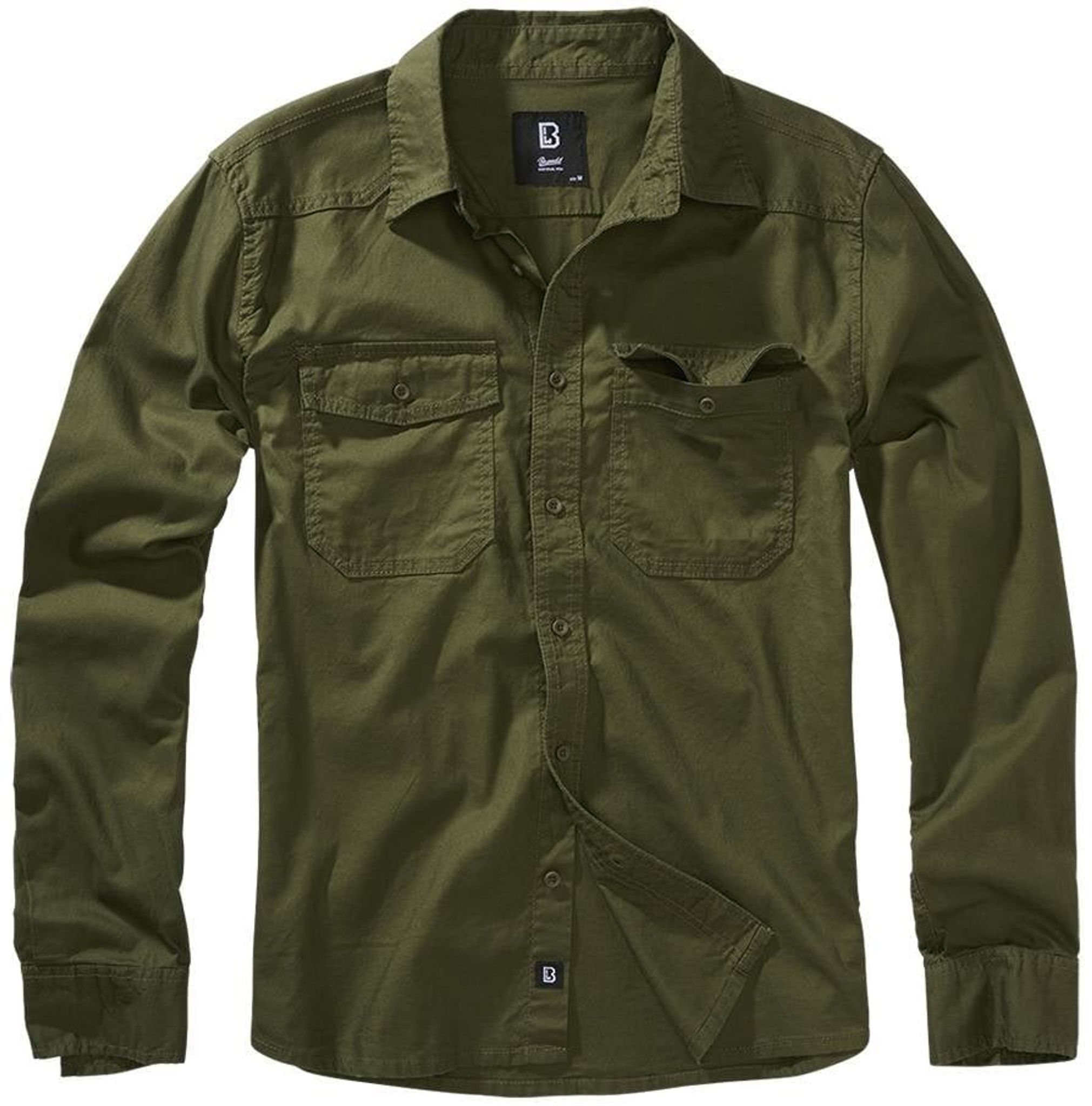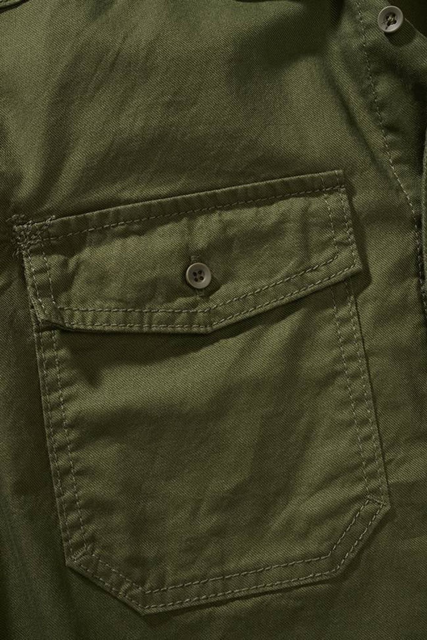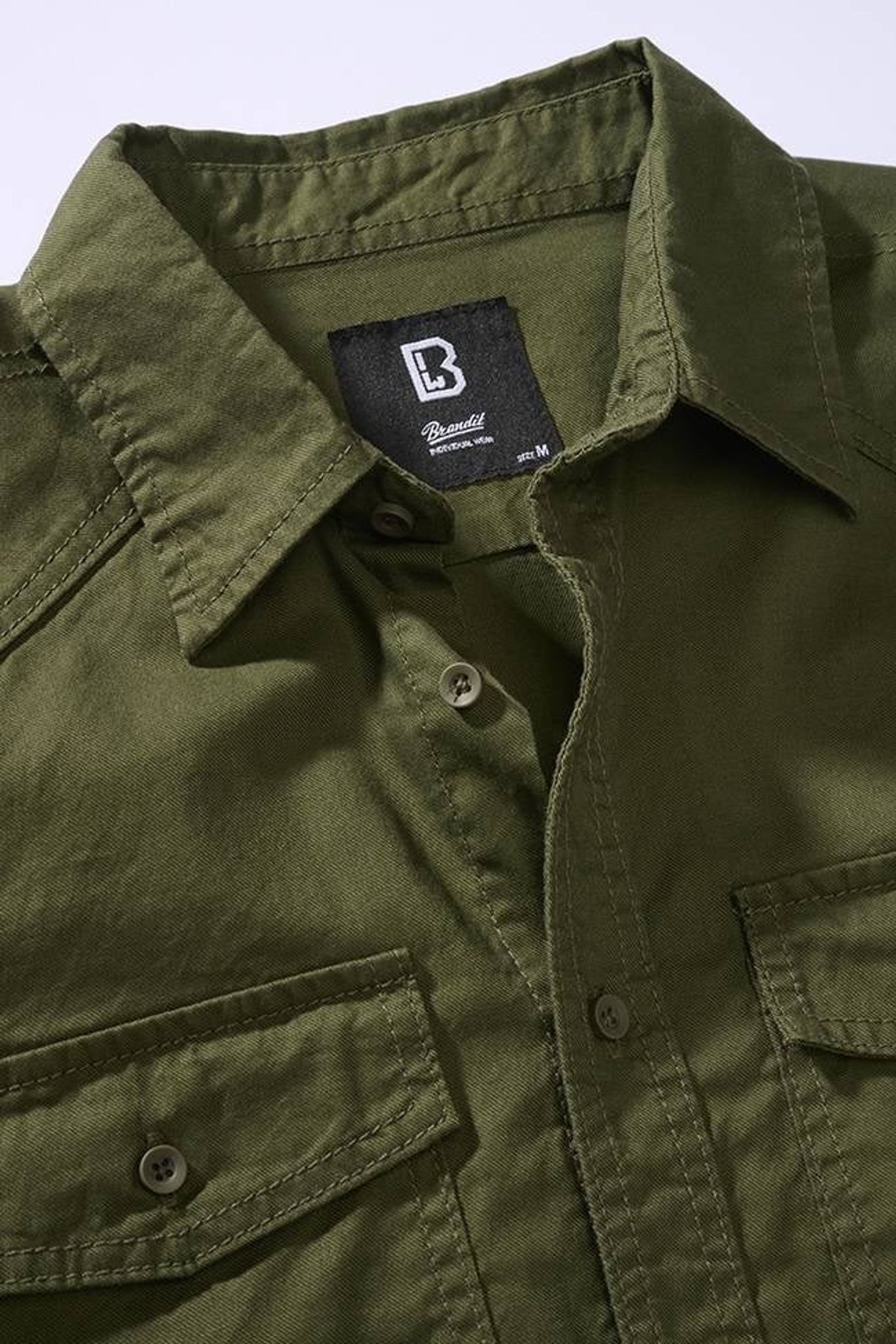 Skjortan stängs med knappar och har två stora bröstfickor.