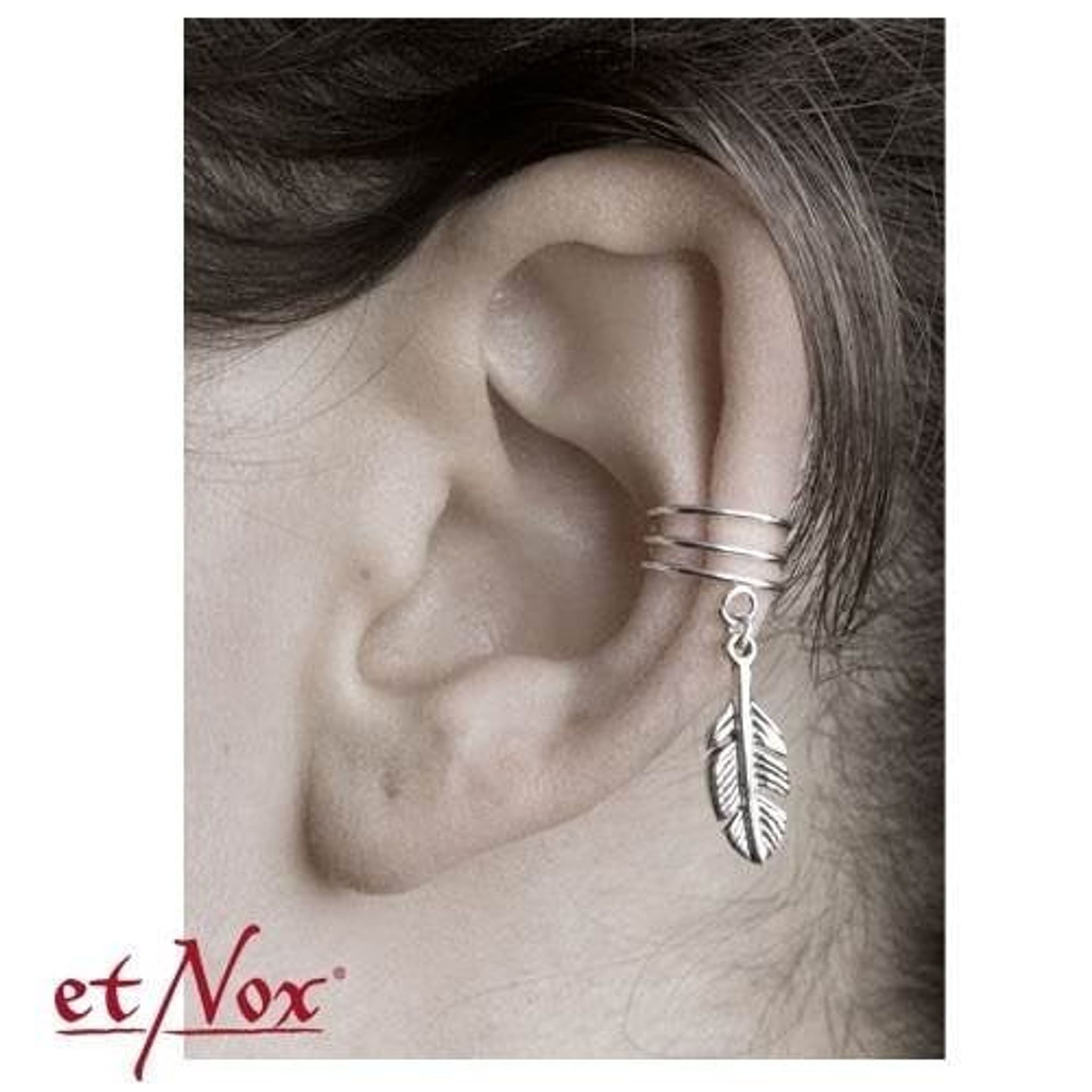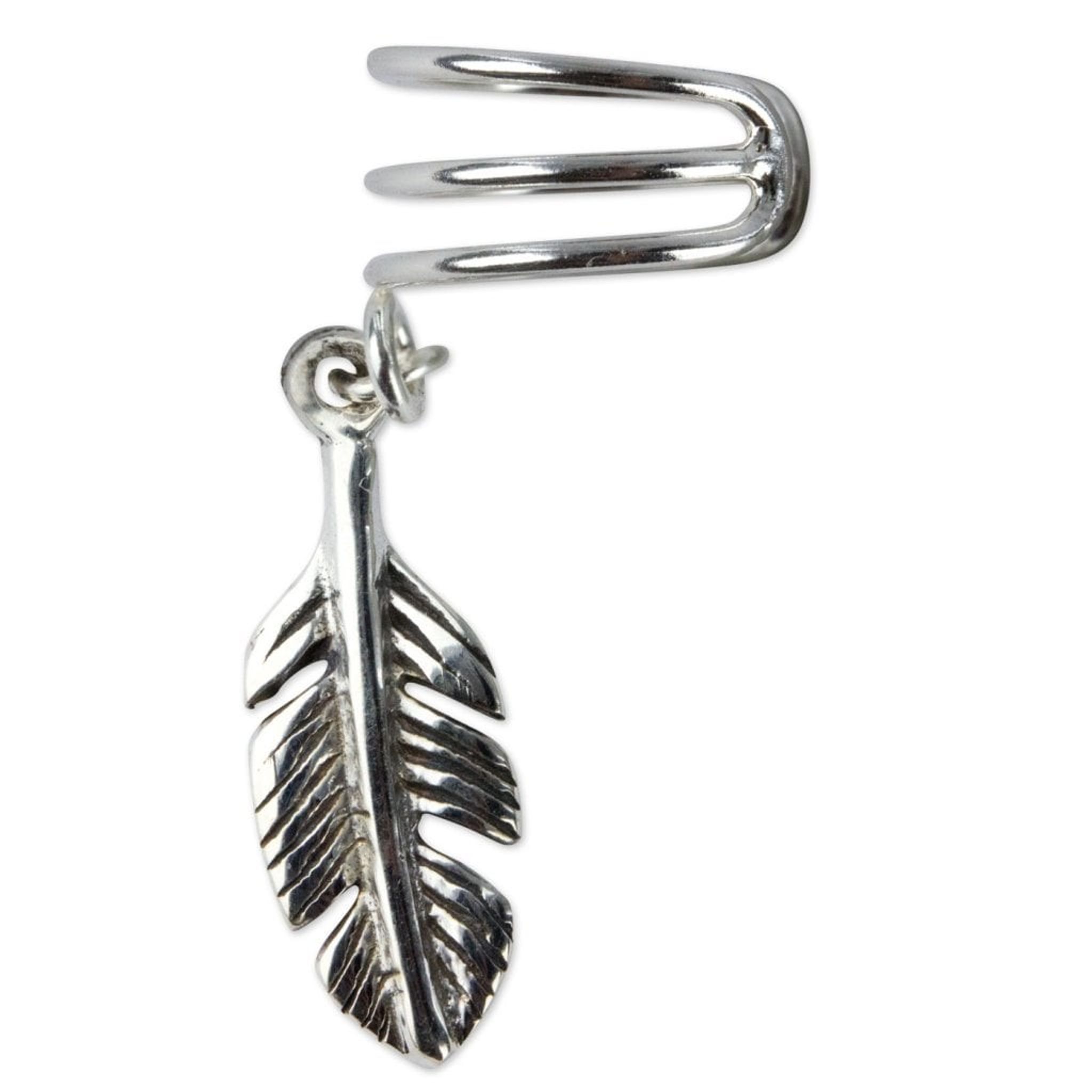 Öronhänge i silver i enkel stil med fjäder som detalj. Öronhänget kan bäras utan att man har hål i örat.