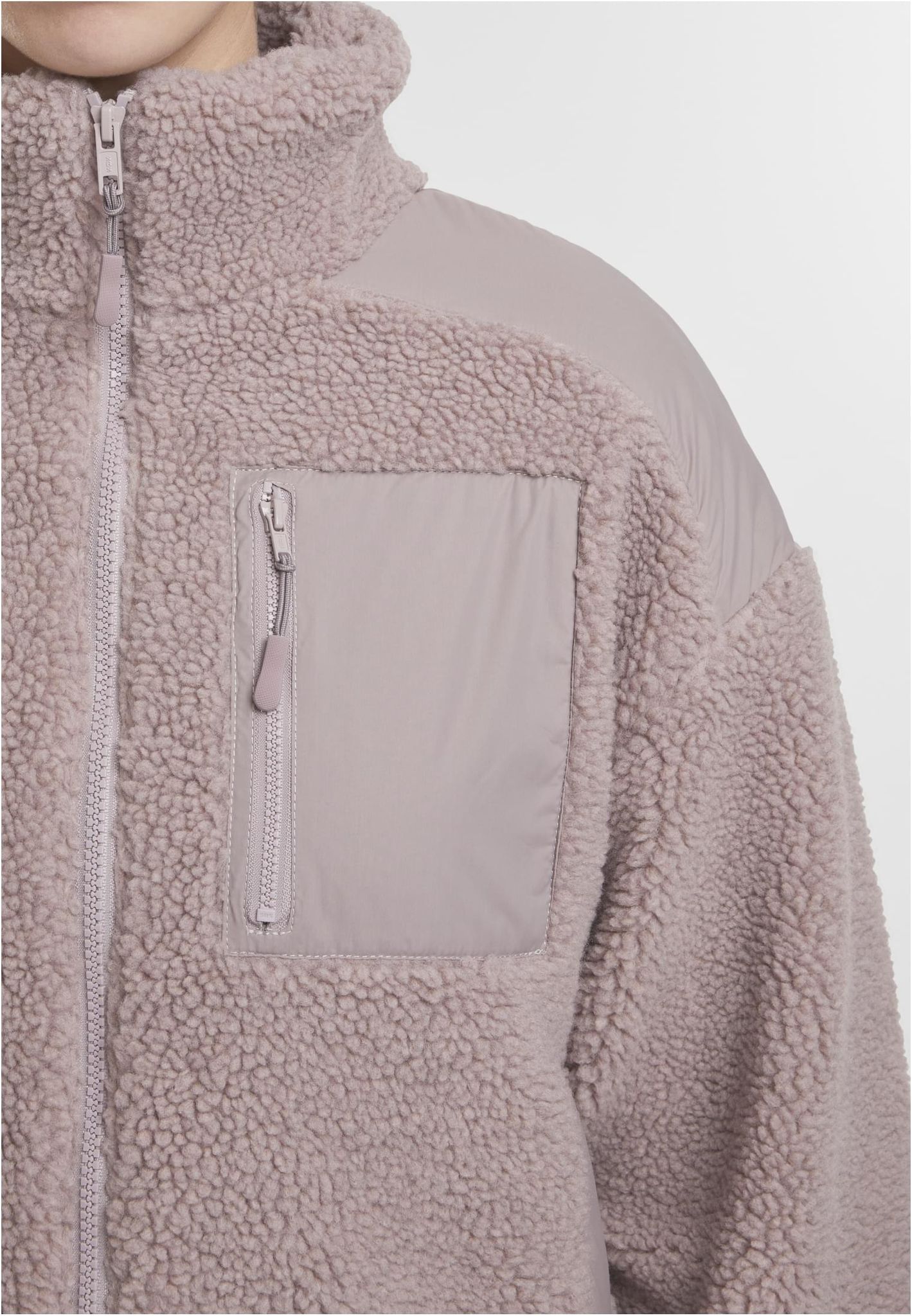 - Material: Shell Fabric 1: 100% Polyester, Sherpa, 330 gsm Shell Fabric 2: 100% Polyamide, Nylon Ribstop, 58 gsm Lining 1: 100% Polyester, Charmeuse, 110 gsm