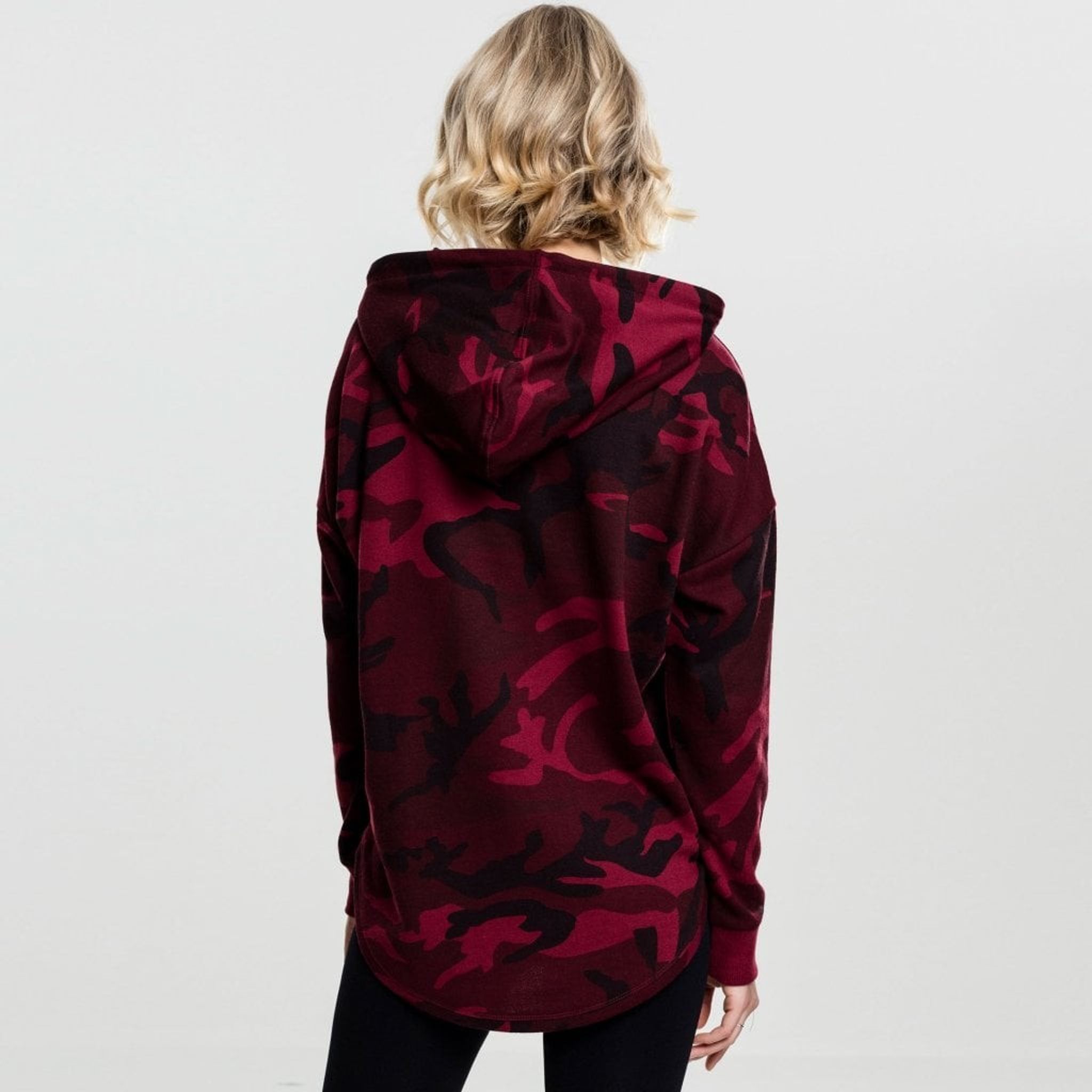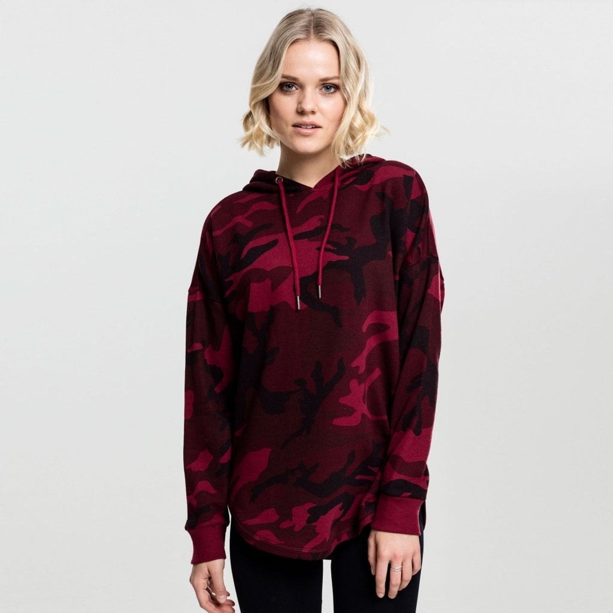 Hoodien finns i färger som burgundy camo, dark camo oliv camo och rosa camo.
