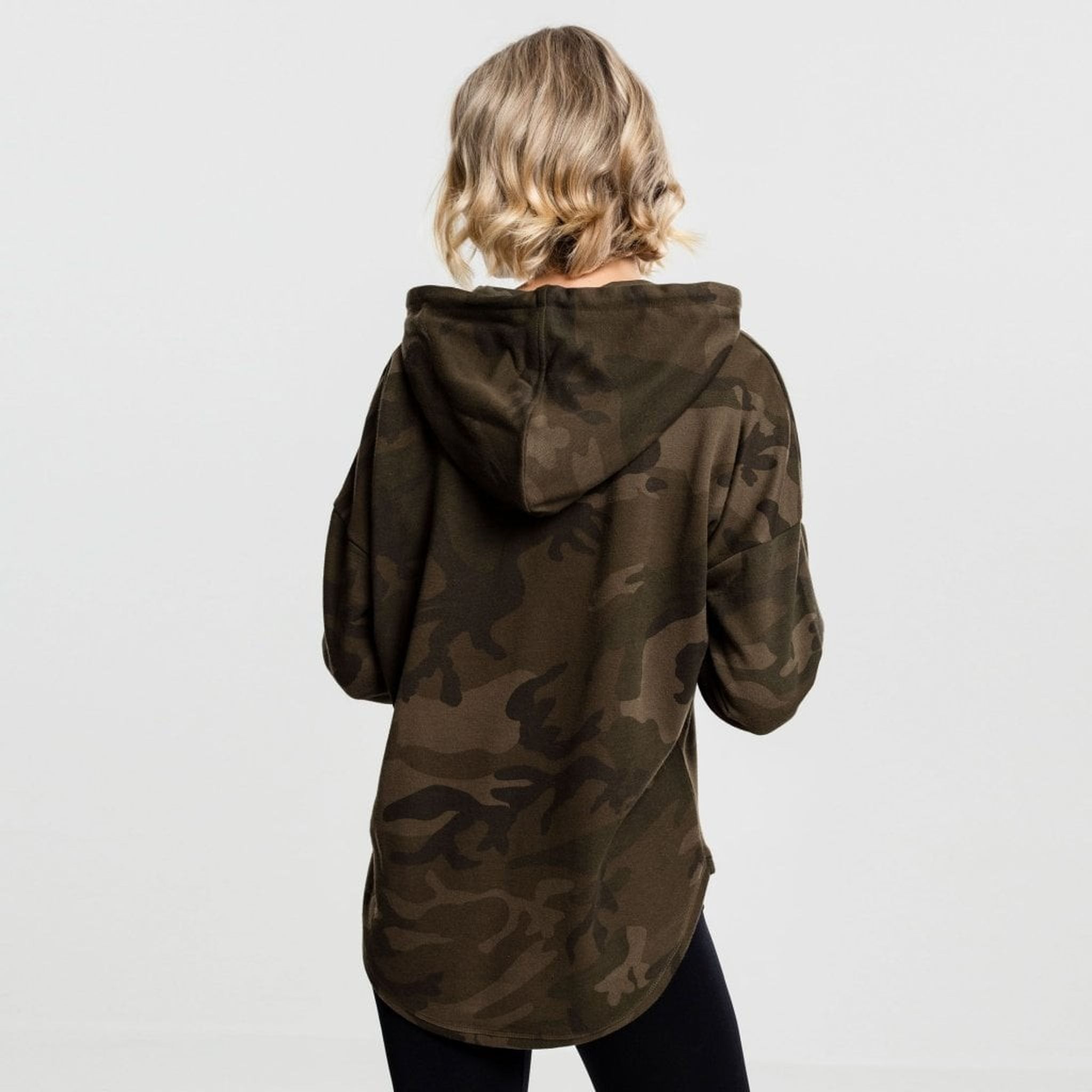 En så kallad ocersized hoodie som är lite rymligare än vanligt och ger en härligt avslappnad stil i kamofluage.