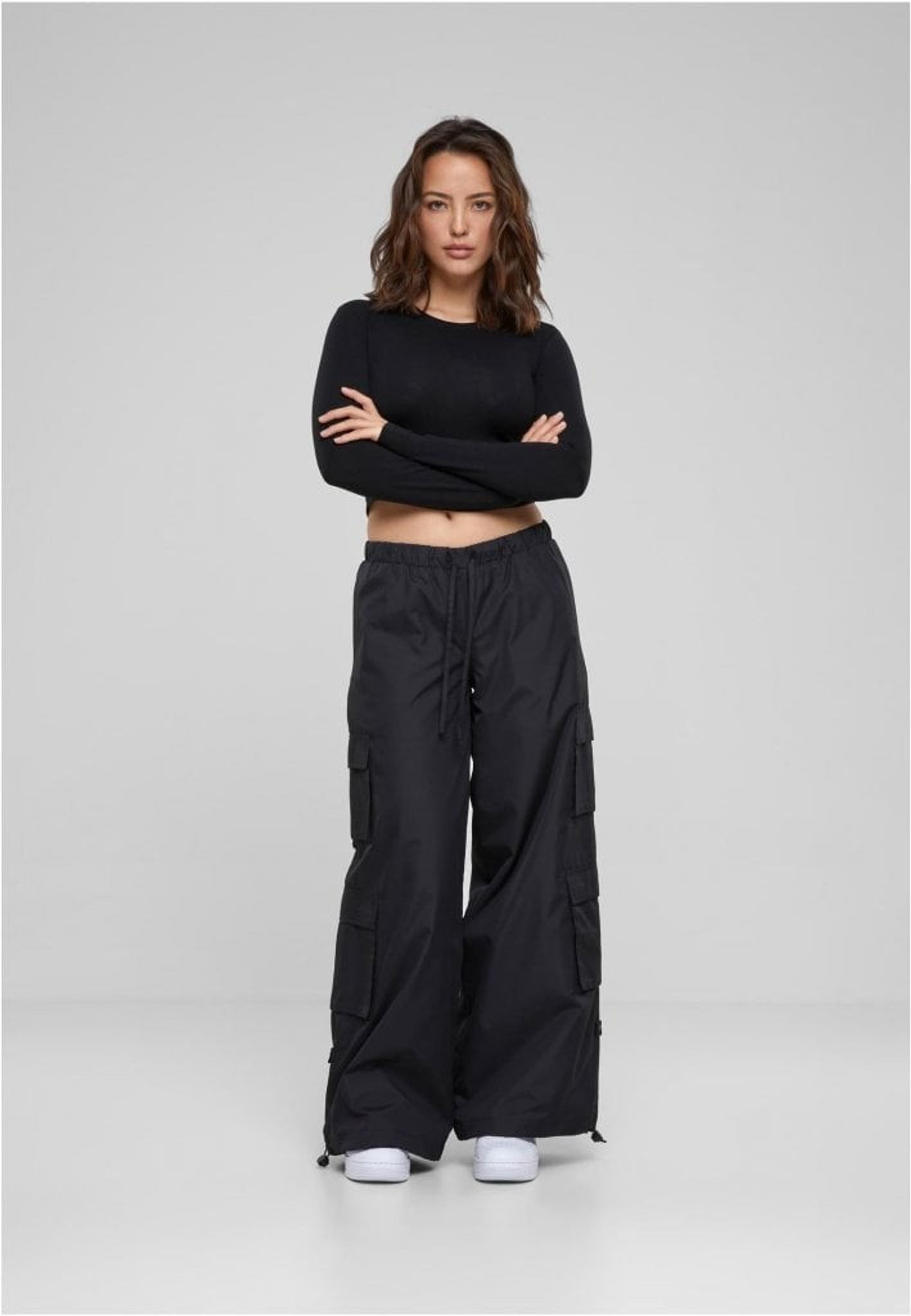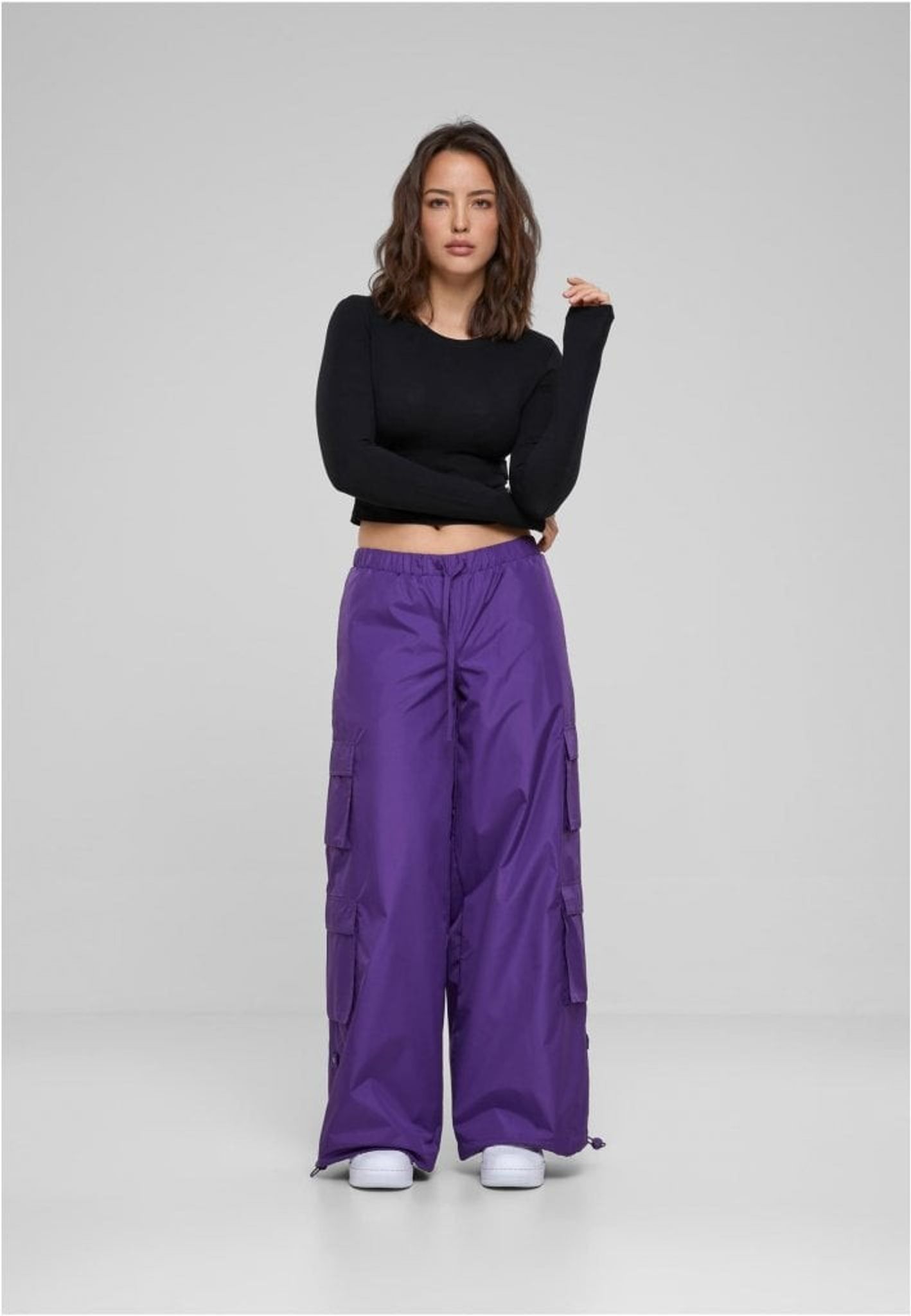 Dessa fallskärmsbyxor erbjuder en speciell look med vida ben och fyra cargofickor. De är tillverkade av lätt ripstop-polyester och accentueras av en oversize passform.