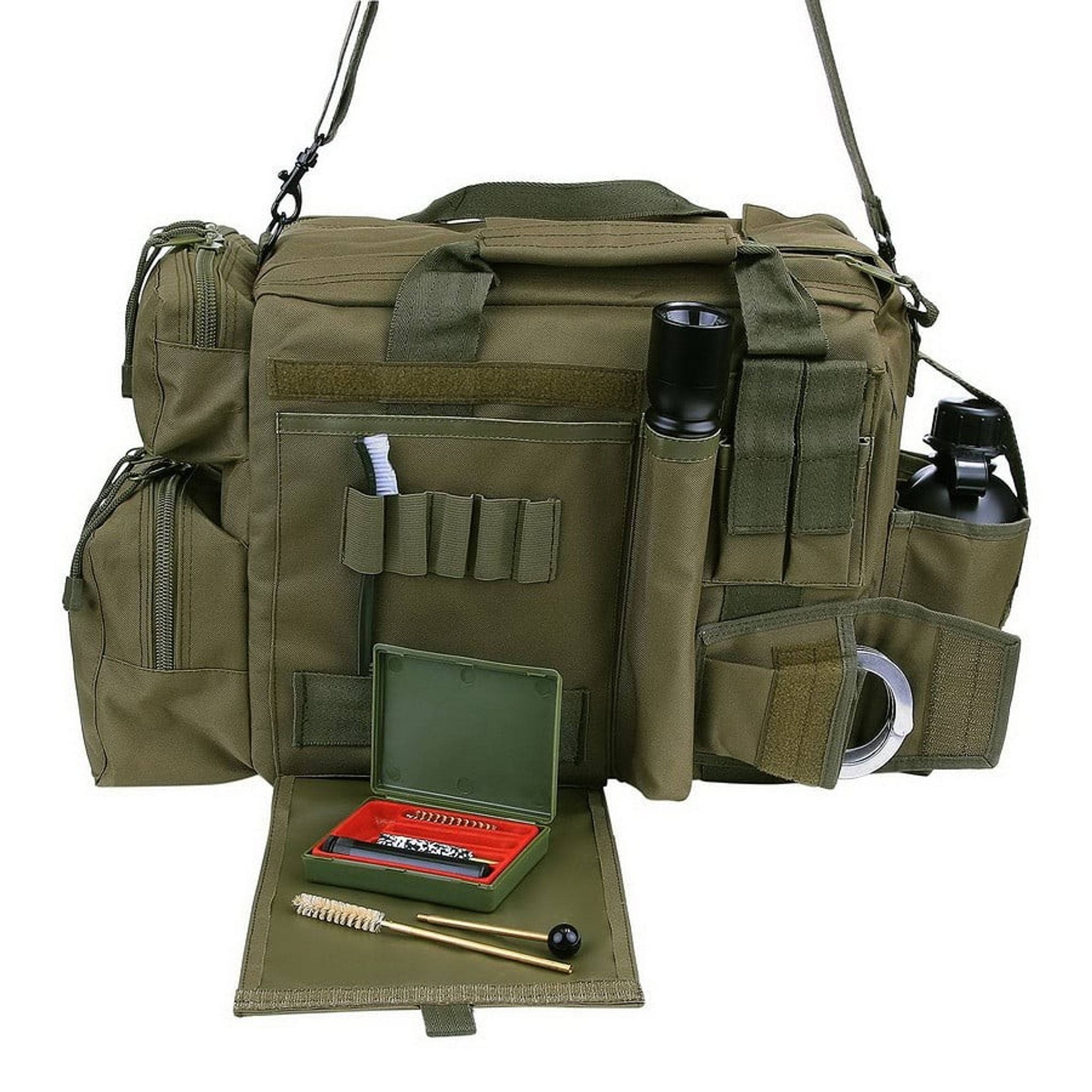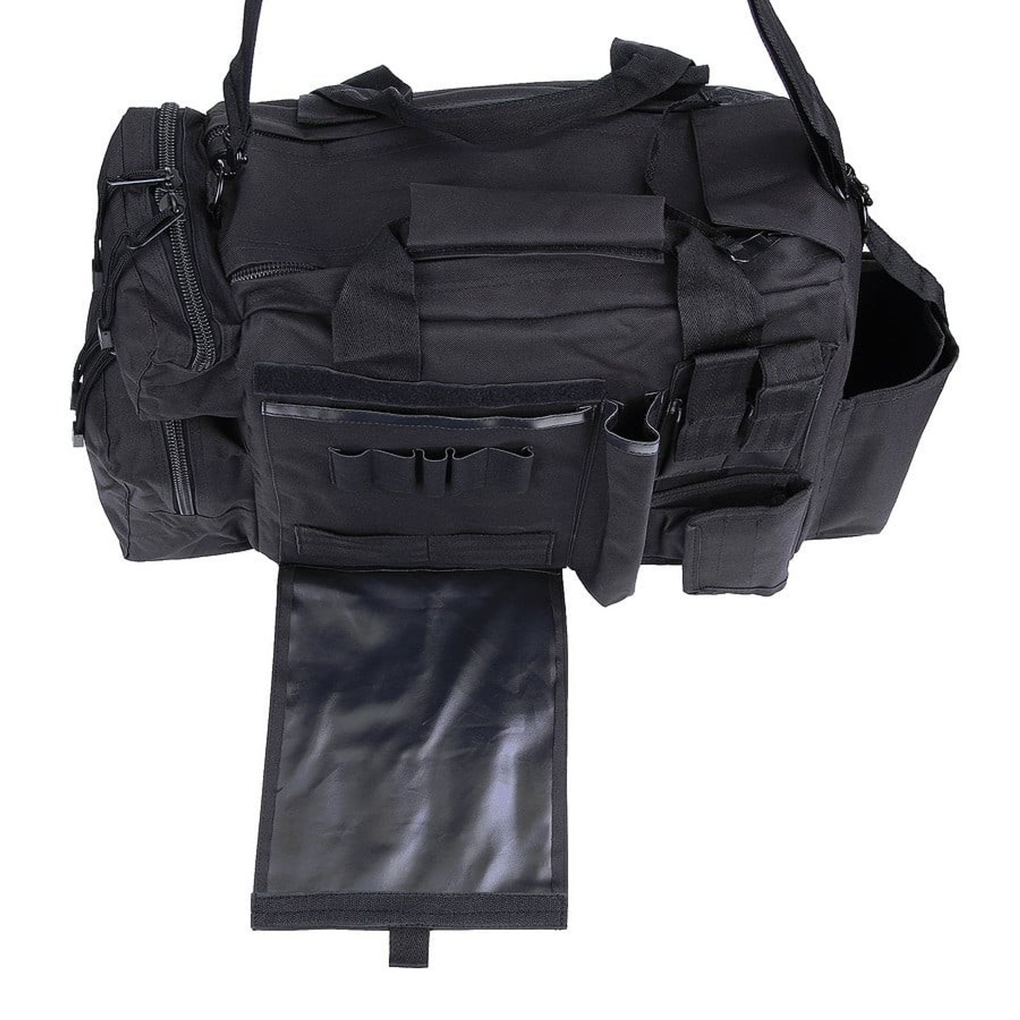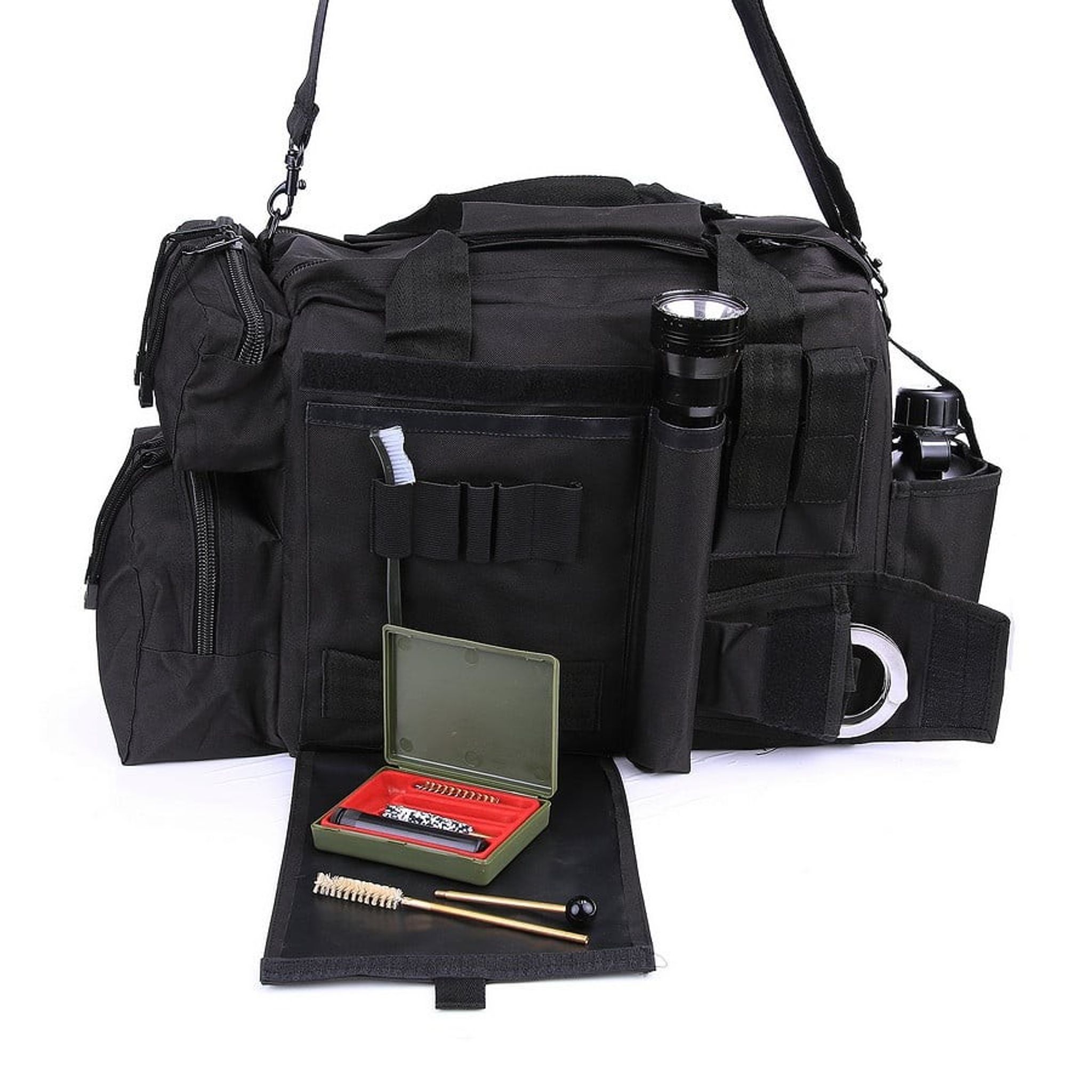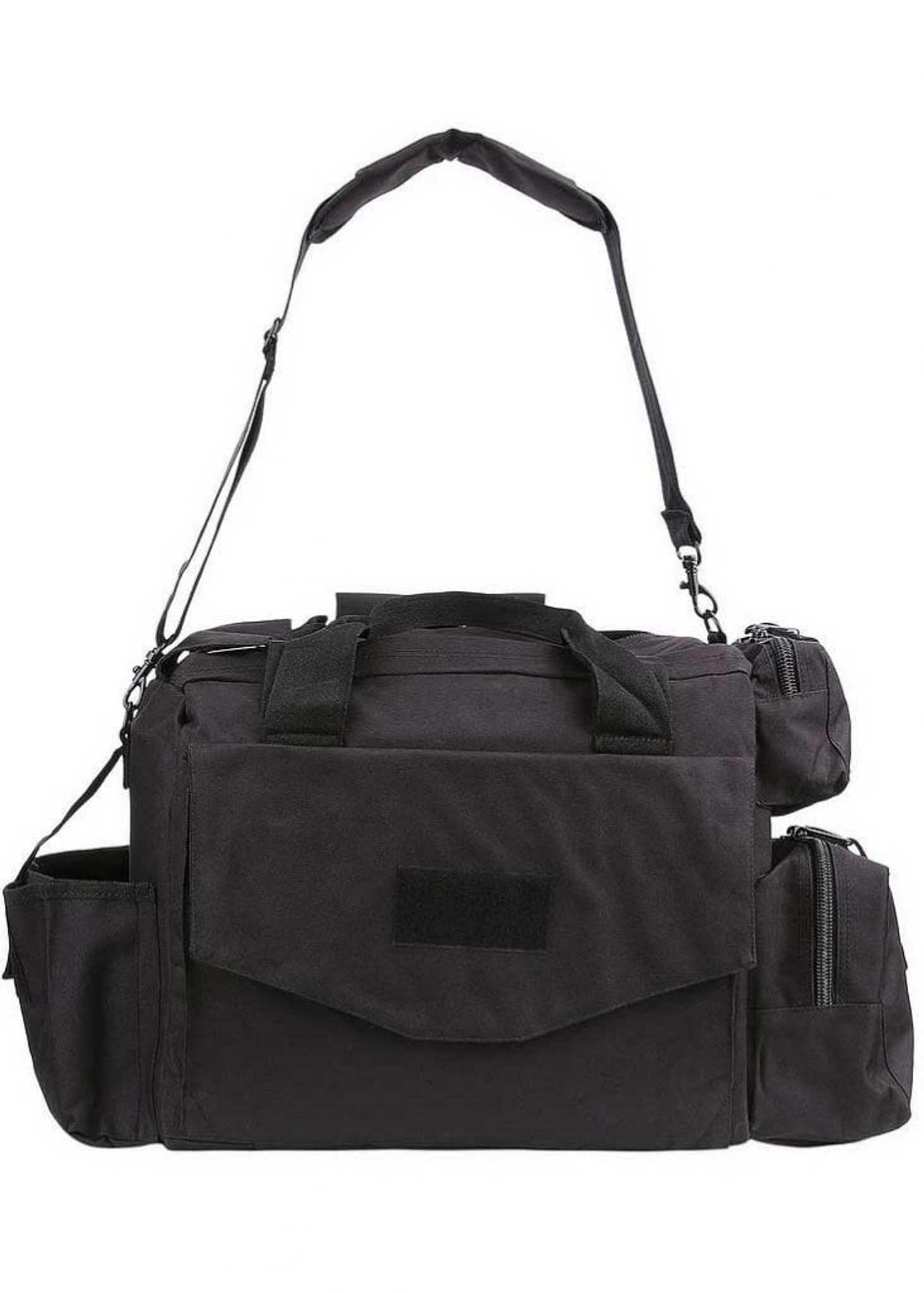 - Funktioner: Justerbara förstärkta avdelare, förstärkta yttre sidor (fyllda med tjock skum), 2 pistolmagasinpåsar, dubbel dragkedja på toppen, bekväm bärrem (justerbar), kardborrepanel för patchar, handfängselpåse, flera förvaringsfack med dragkedja, inre sidan av väskan är avslutad med PVC (vattenavvisande)