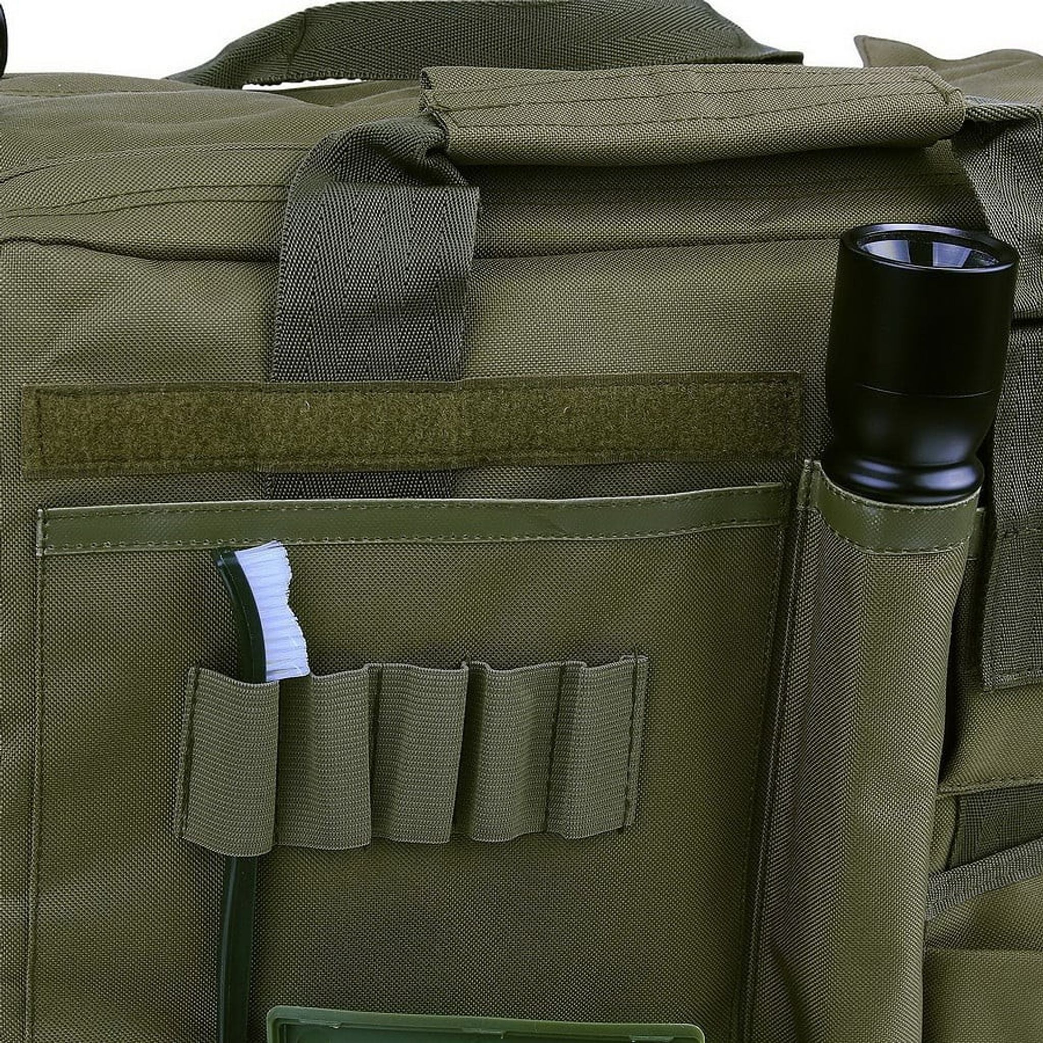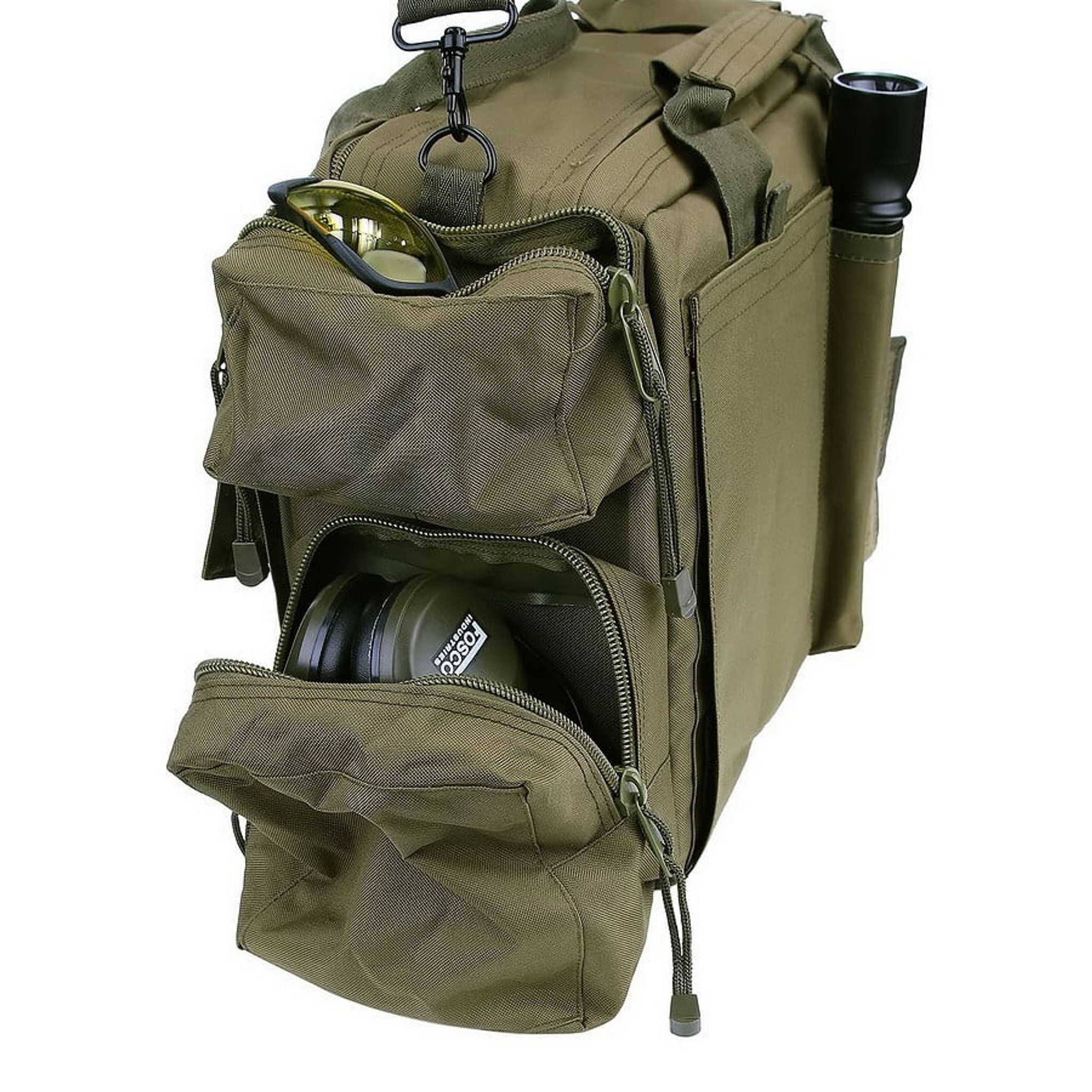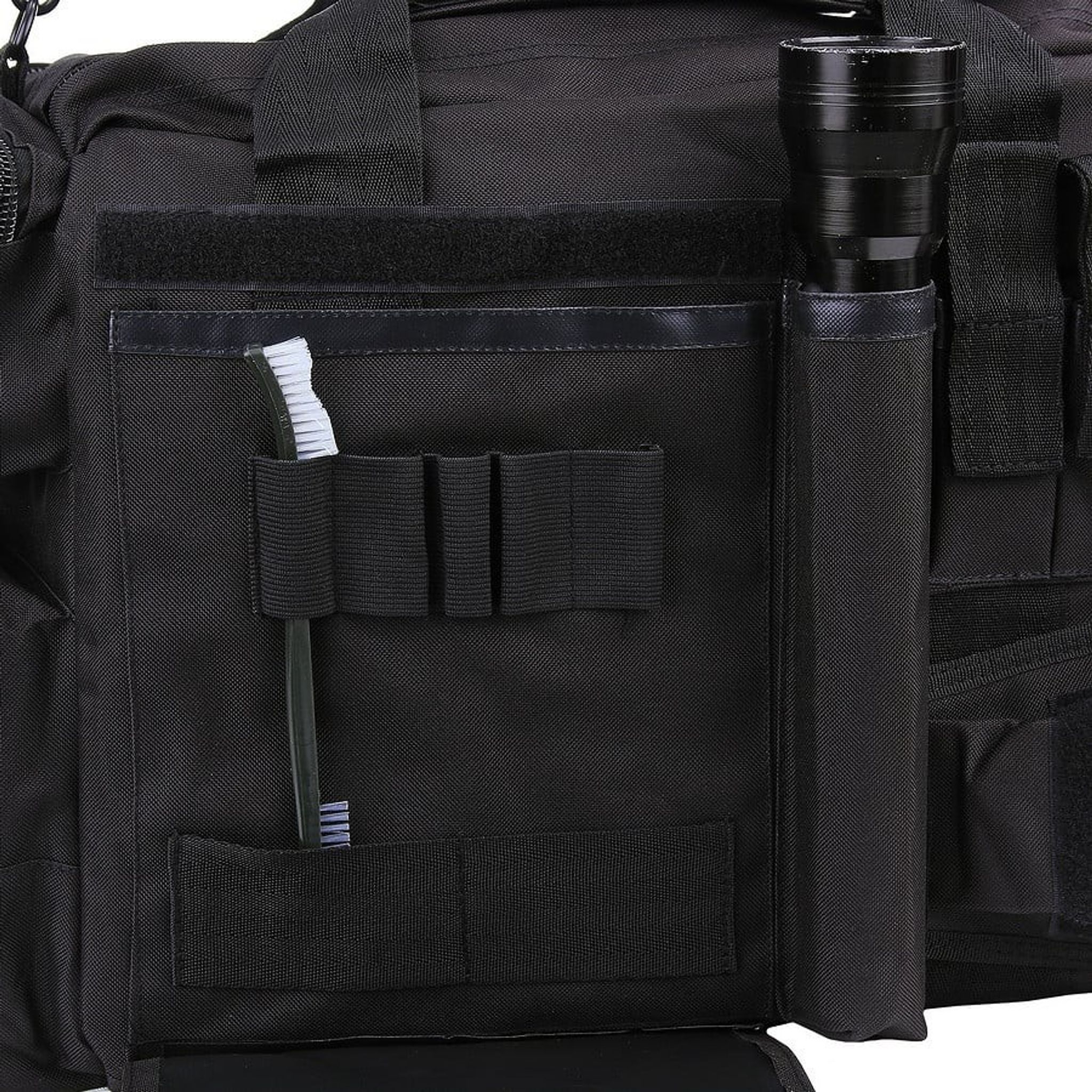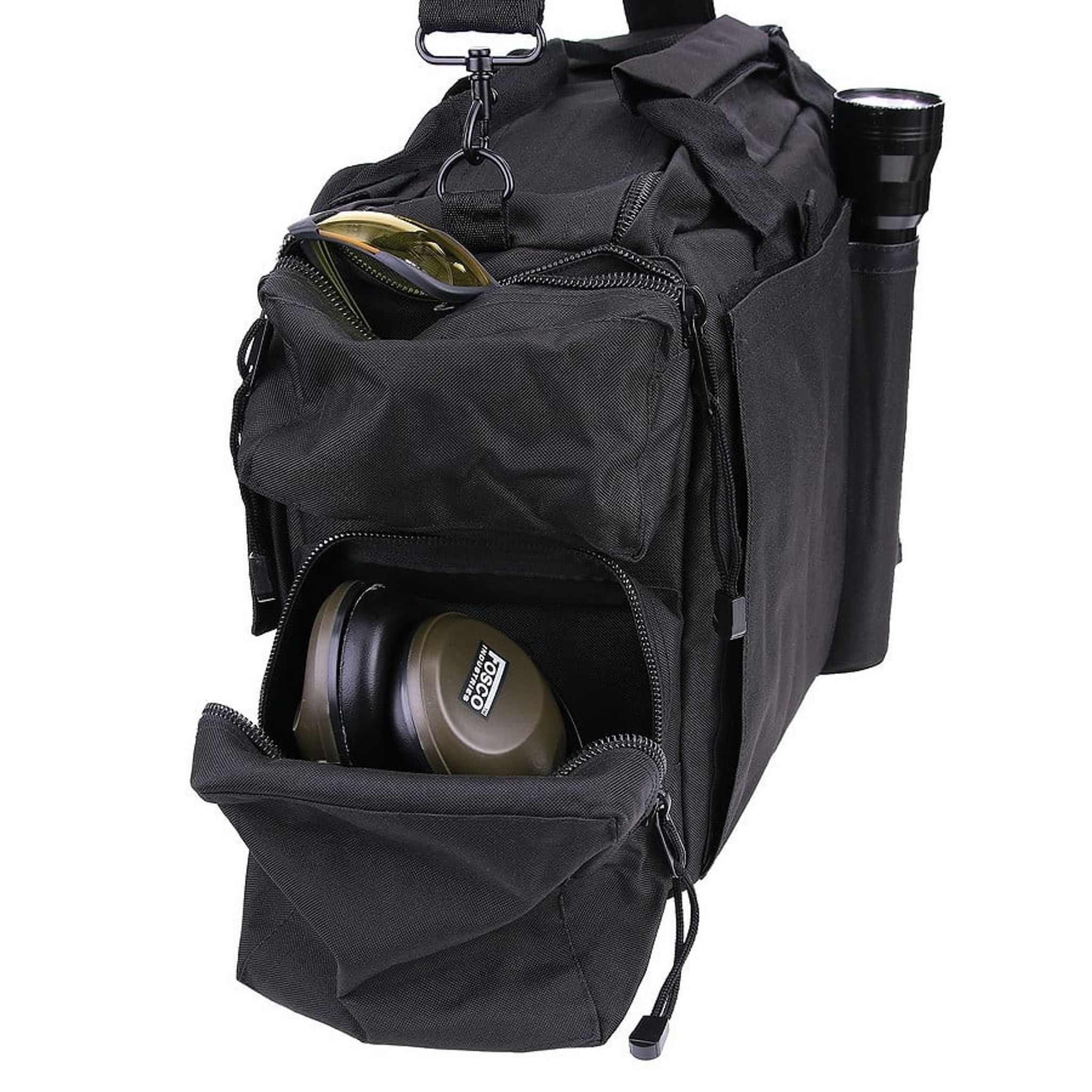 - Funktioner: Justerbara förstärkta avdelare, förstärkta yttre sidor (fyllda med tjock skum), 2 pistolmagasinpåsar, dubbel dragkedja på toppen, bekväm bärrem (justerbar), kardborrepanel för patchar, handfängselpåse, flera förvaringsfack med dragkedja, inre sidan av väskan är avslutad med PVC (vattenavvisande)