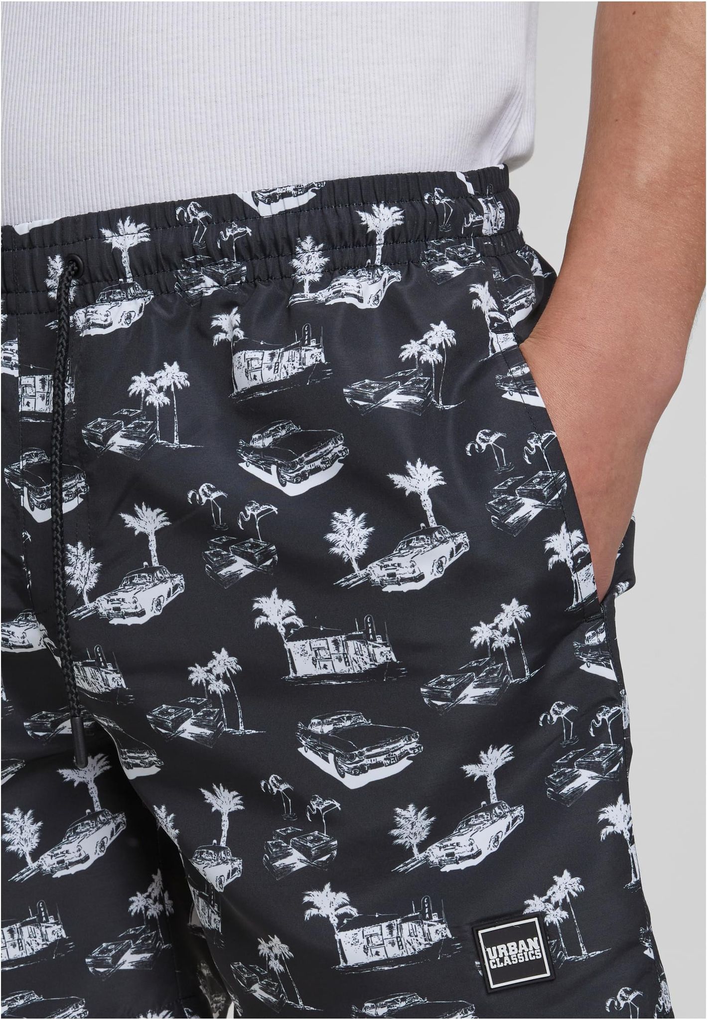 Upplev sommaren med de stilfulla Pattern Swim Shorts i svart och vitt. Med en unik design av palmer och bilar, ger dessa shorts en modern och avslappnad känsla som passar perfekt för både stranden och poolen.