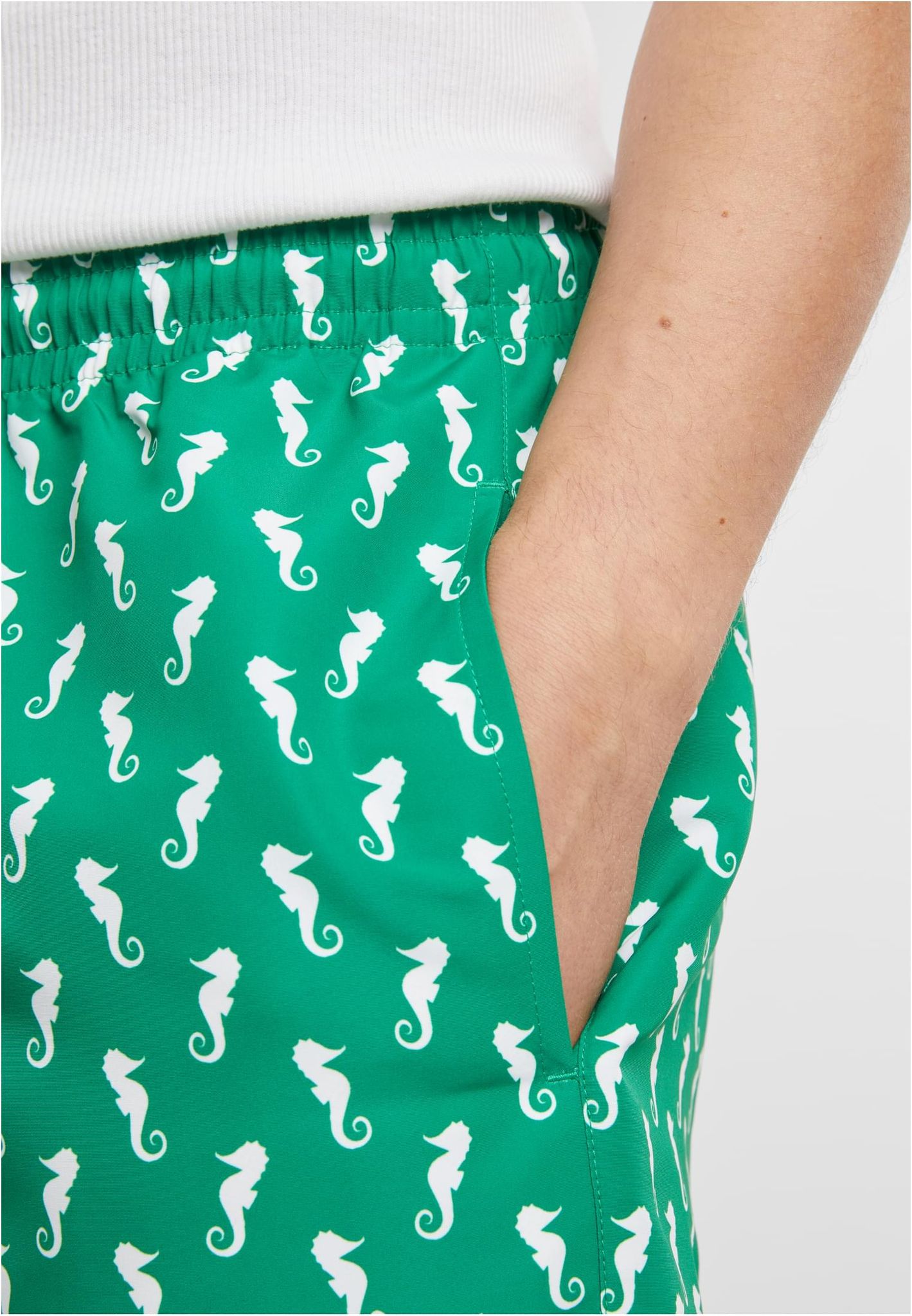 Våra Pattern Swim Shorts Bright Green Seahorse är skapade för dig som vill kombinera stil med komfort. Dessa badshorts har ett unikt sjöhäst-mönster, vilket ger en lekfull och ändå sofistikerad look. Det livfulla gröna tyget står ut i mängden och sprider sommarvibbar så fort du tar på dig dem.