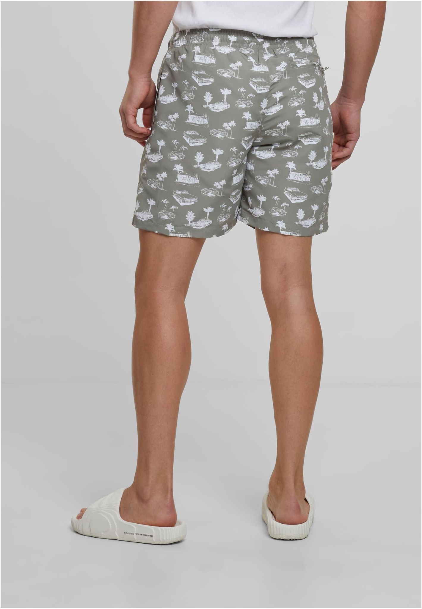 Stilrena och bekväma swim shorts i blekoliv och vitt mönster. Perfekta för en avslappnad dag vid stranden.