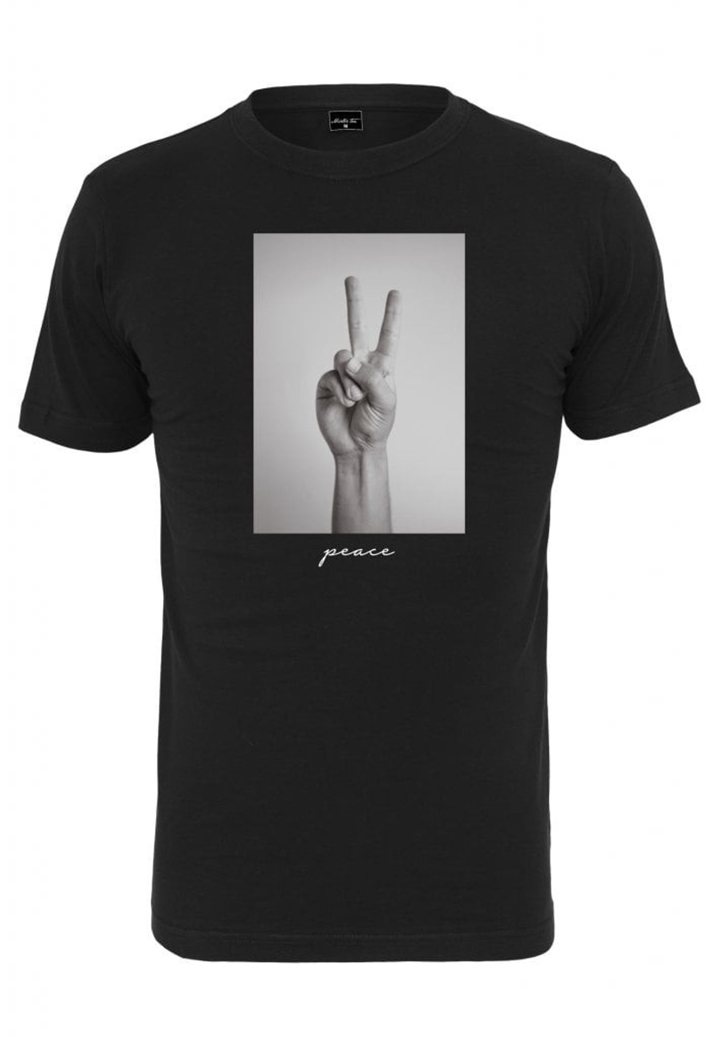 På tröjans framsida är en stor bild av en hand som gör fredstecknet. Under bilden står det peace med små bokstäver.