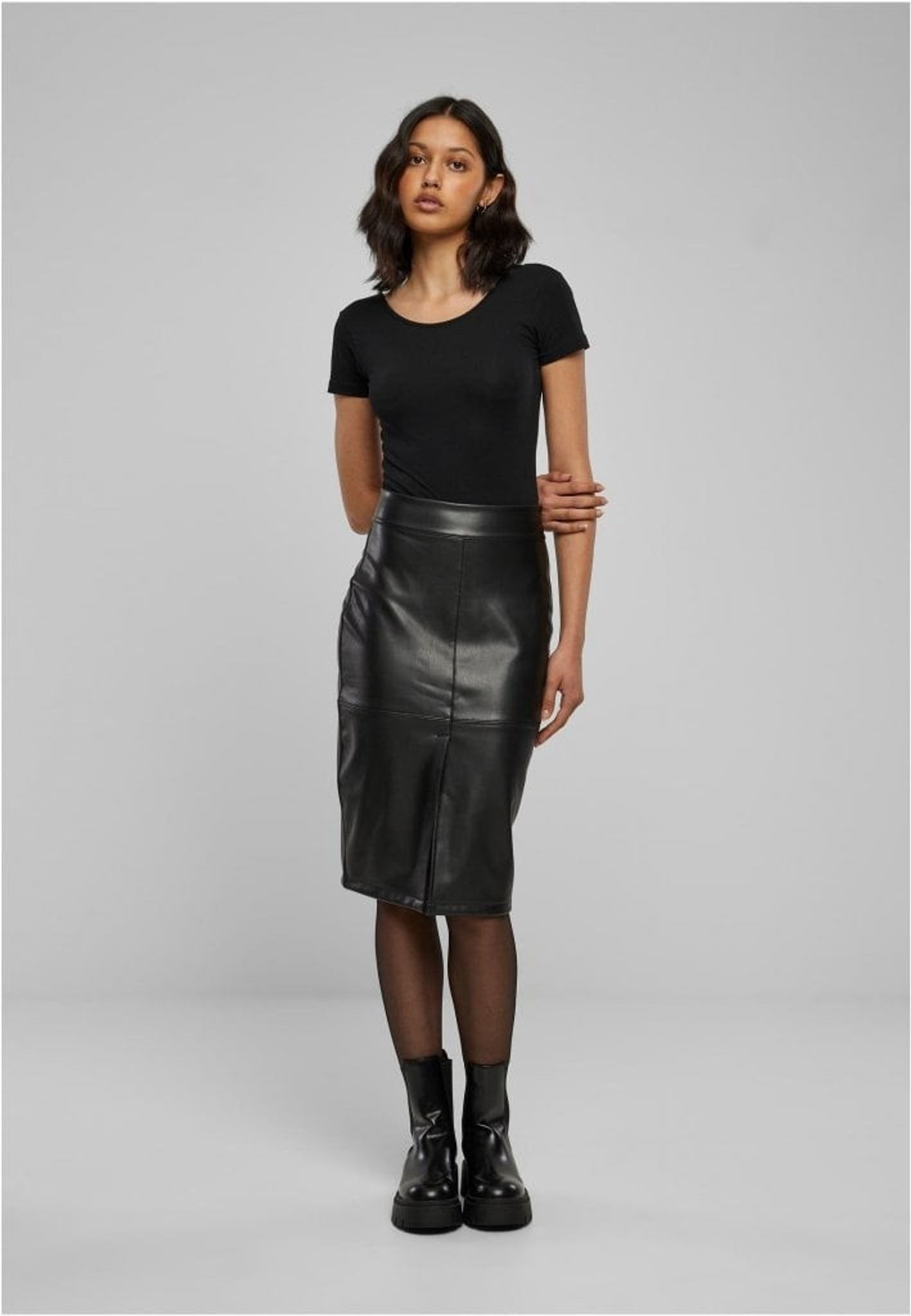 Pennskjol i syntetiskt läder dam.