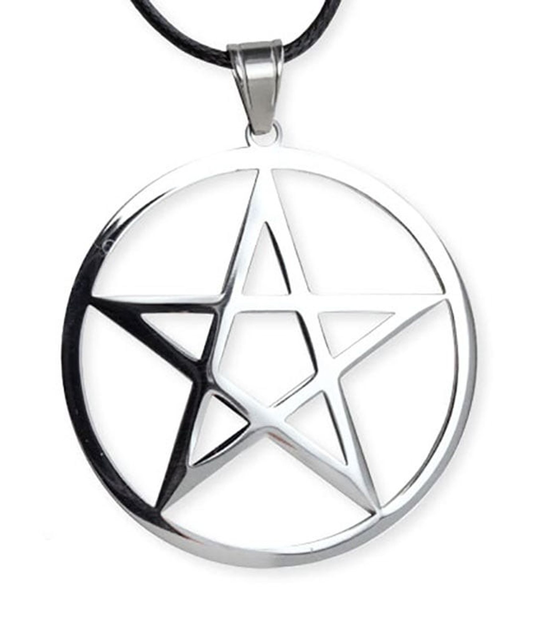 Ett halsband tillverkat i silvrigt rostfritt stål som gör det både tidlöst och hållbart. Den blanka ytan ger en subtil glans som framhäver pentagrammets geometriska skönhet. Med en justerbar läderrem kan du bära halsbandet i en längd som passar din stil och önskade passform.