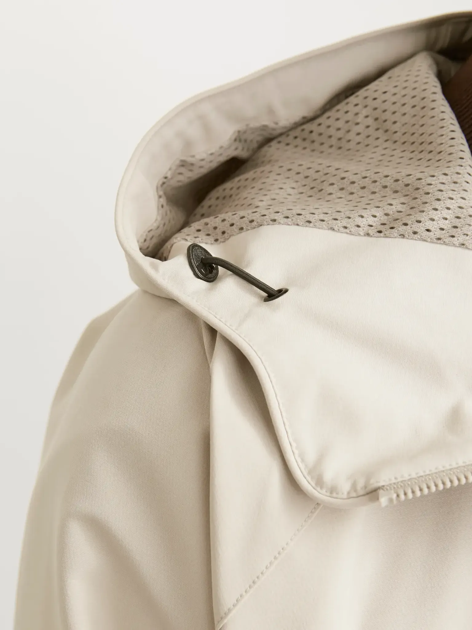 Huvan kan justeras med snören för att ge ett personligt och justerbart skydd mot väder och vind.