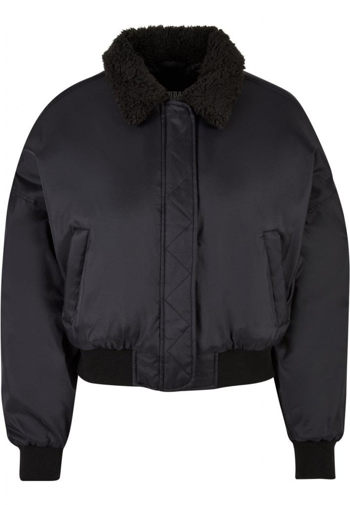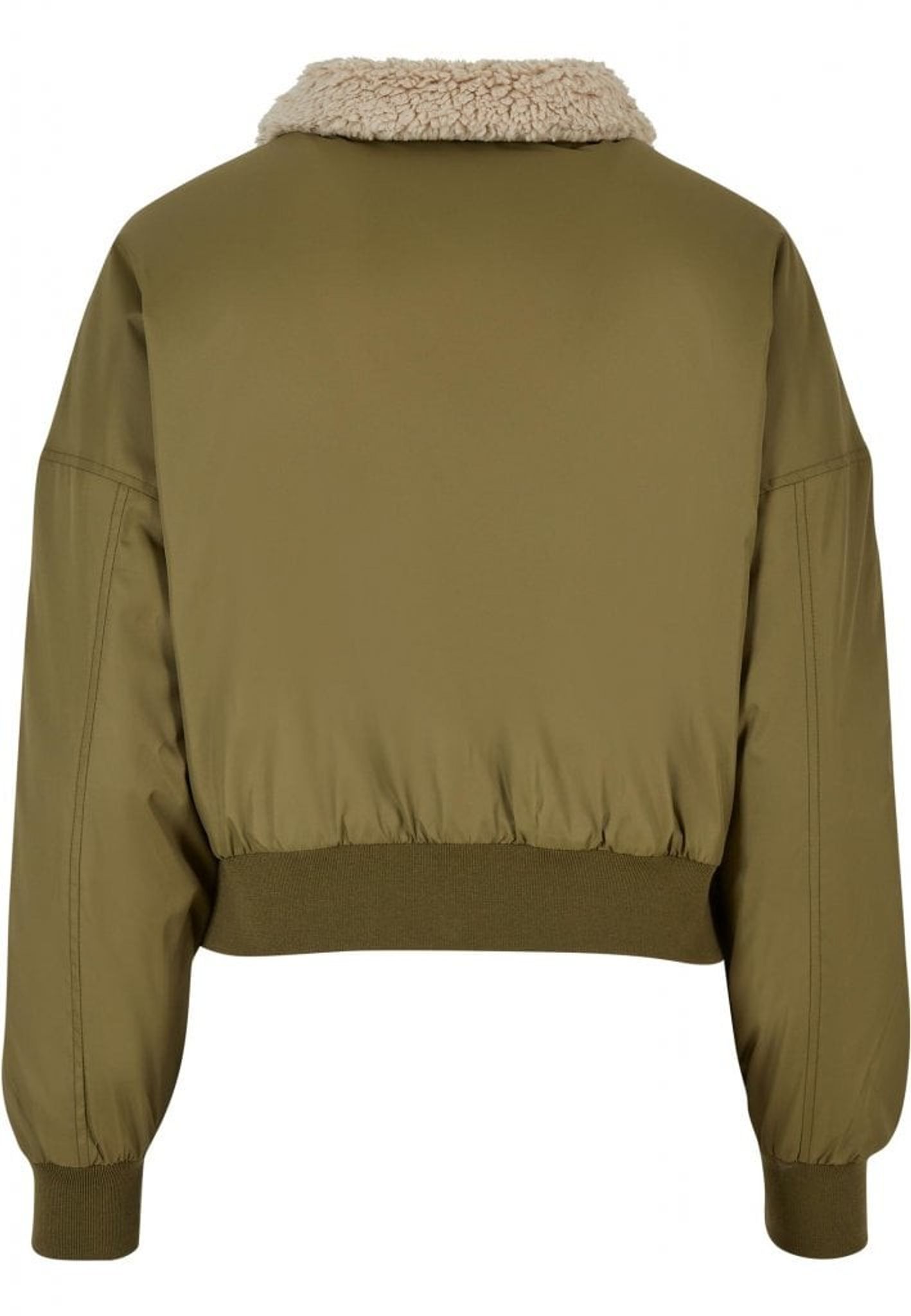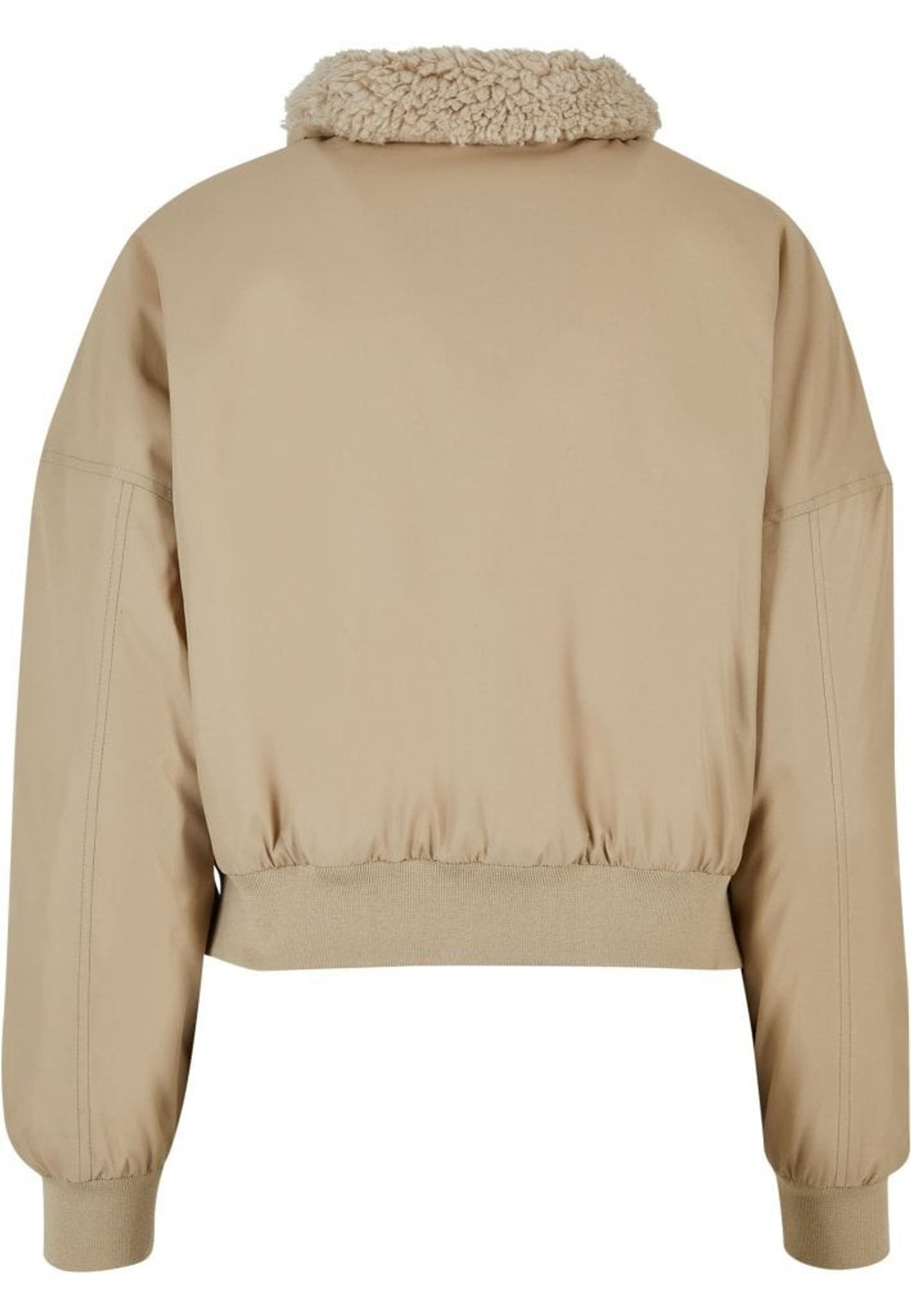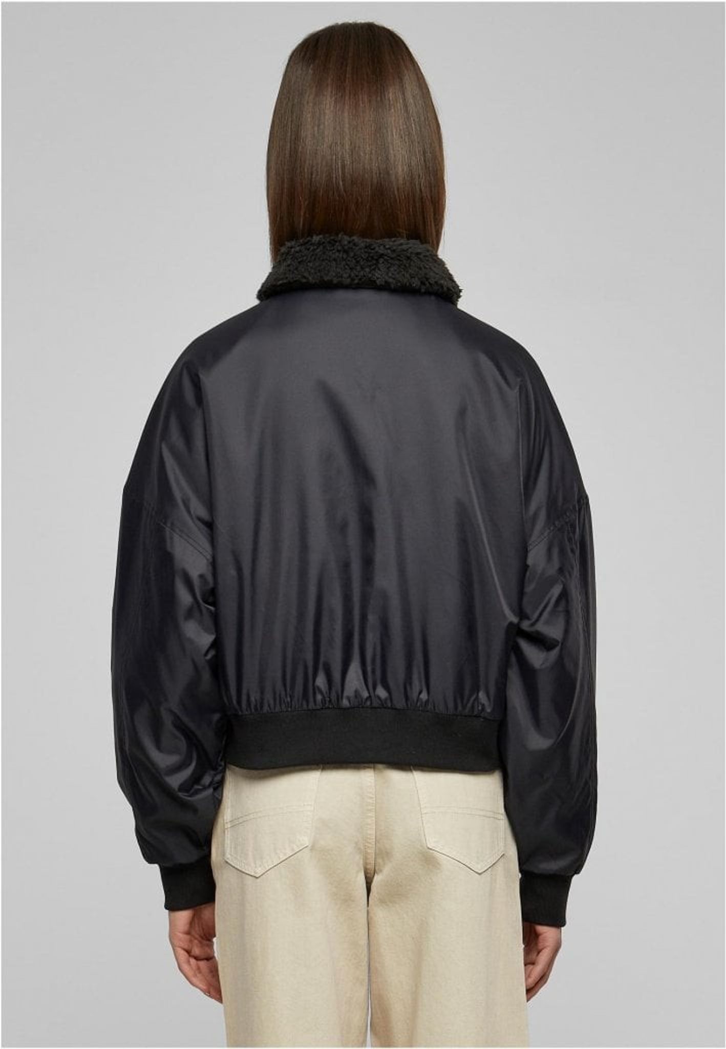Pilotjacka dam Denna pilotjacka för damer är stark och stilren, med en klassisk form och ett fluffigt Sherpa-krage. Designen erbjuder en traditionellt kort passform med breda manschetter på ärmar och nederkant samt en dold dragkedja framtill.