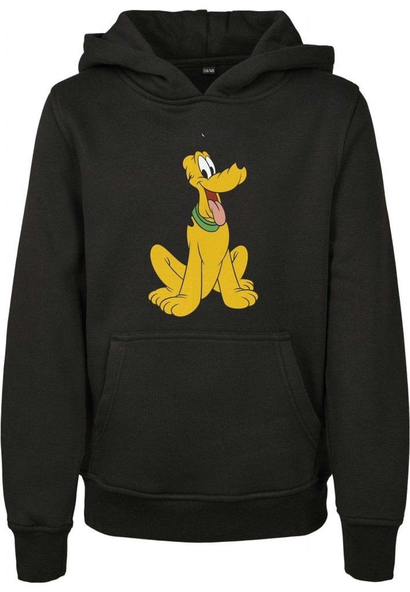 Disneys Pluto tryckt på bröstet av en svart hoodie i barnstorlekar.