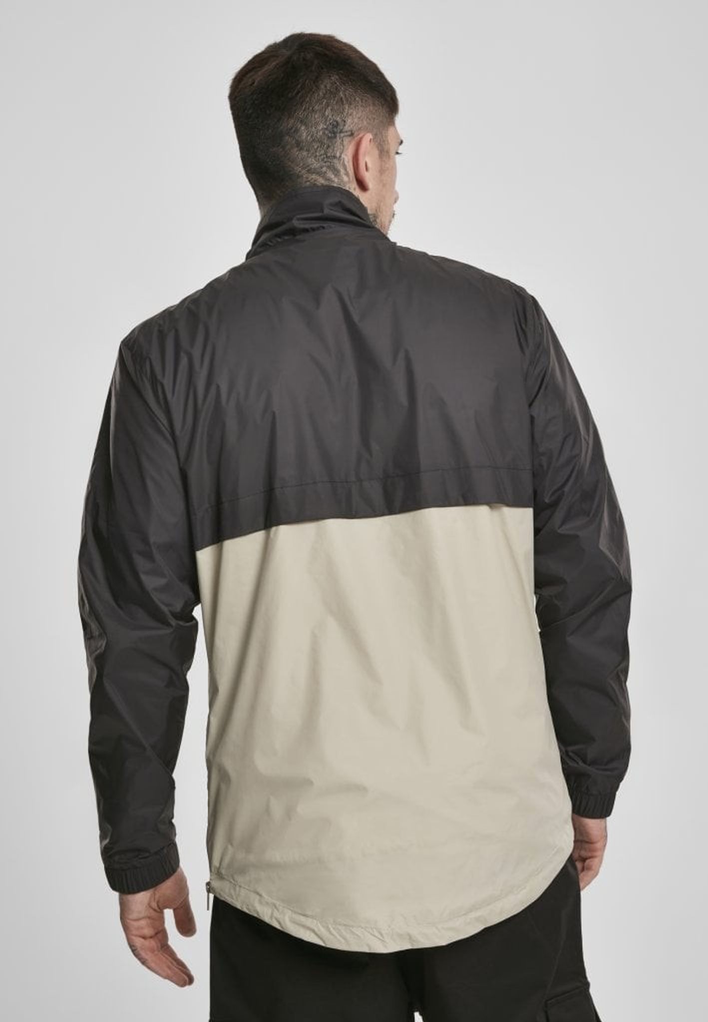 En riktigt skön jacka i ett tunt och lätt tyg. Jackan är tvådelad i två olika färger där tyget delar upp sig över magen.