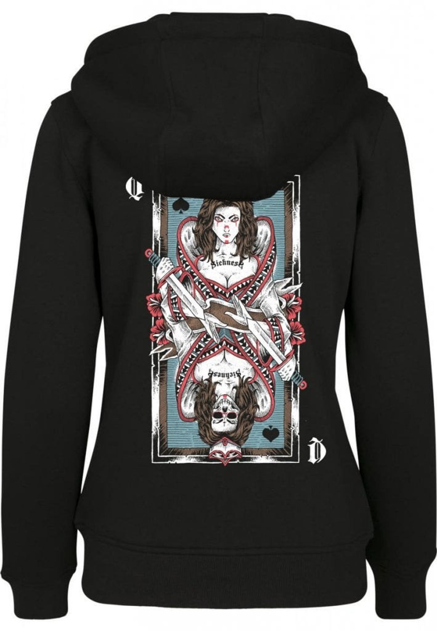 En riktigt mjuk och skön ziphoodie med Insomnia clothings underbara version av spader dam tryckt i stor ryggtavla.