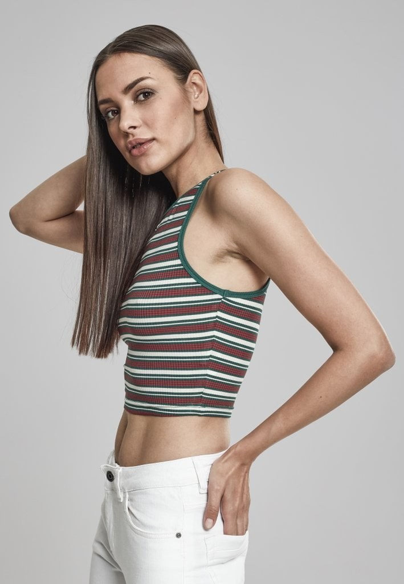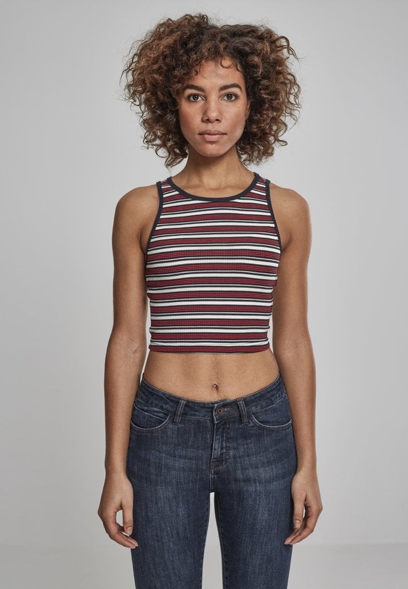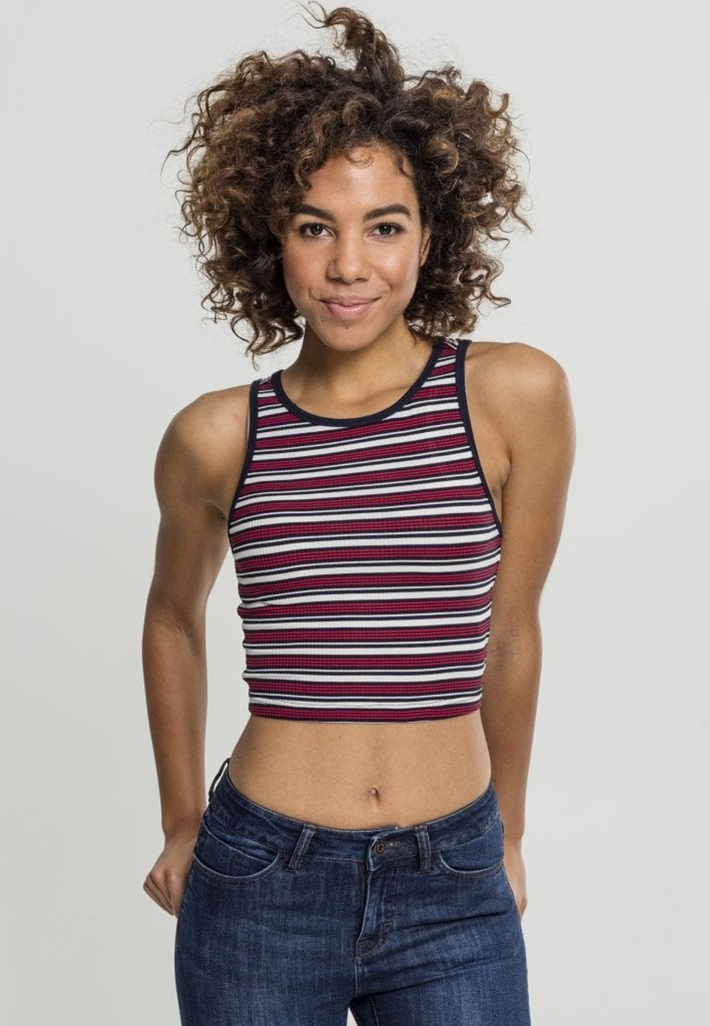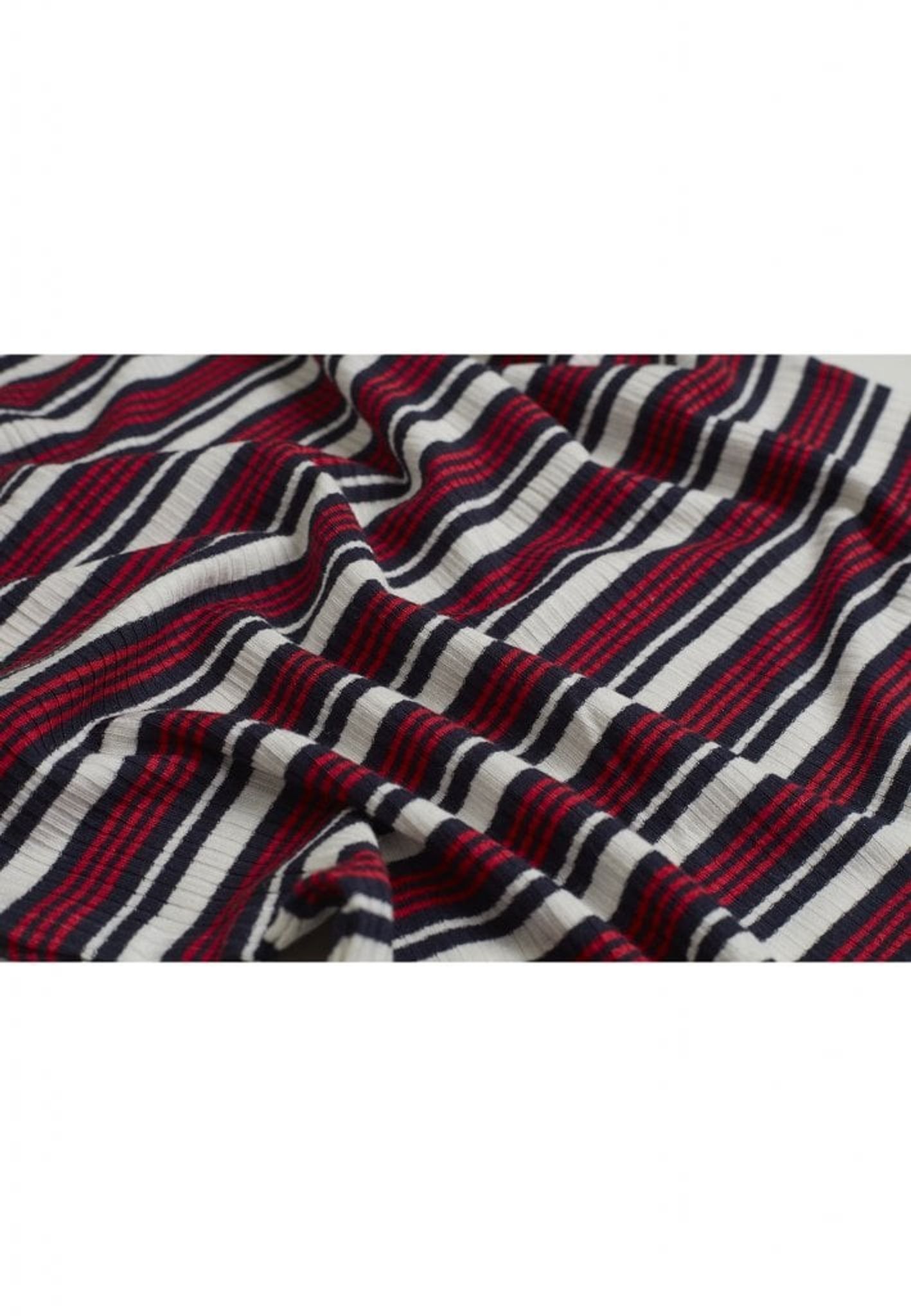 Denna top är randig i fem olika färgställningar.