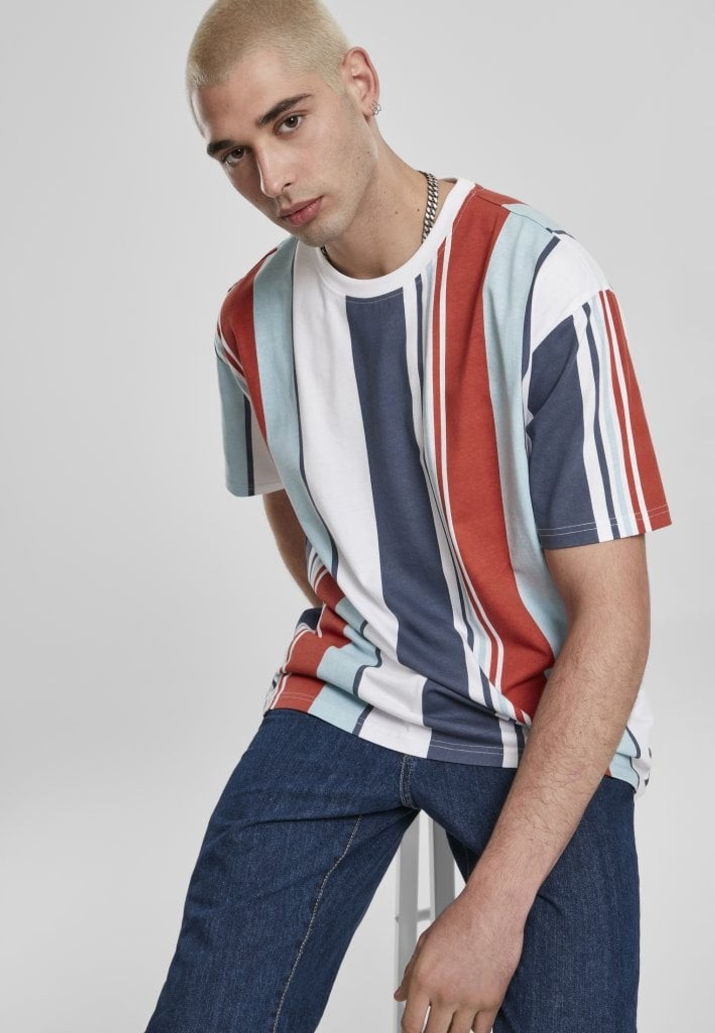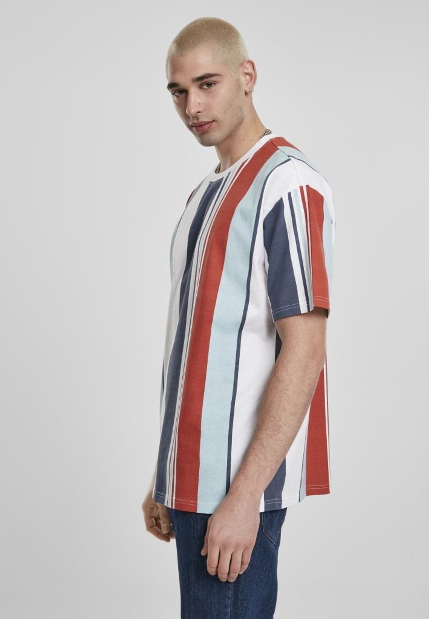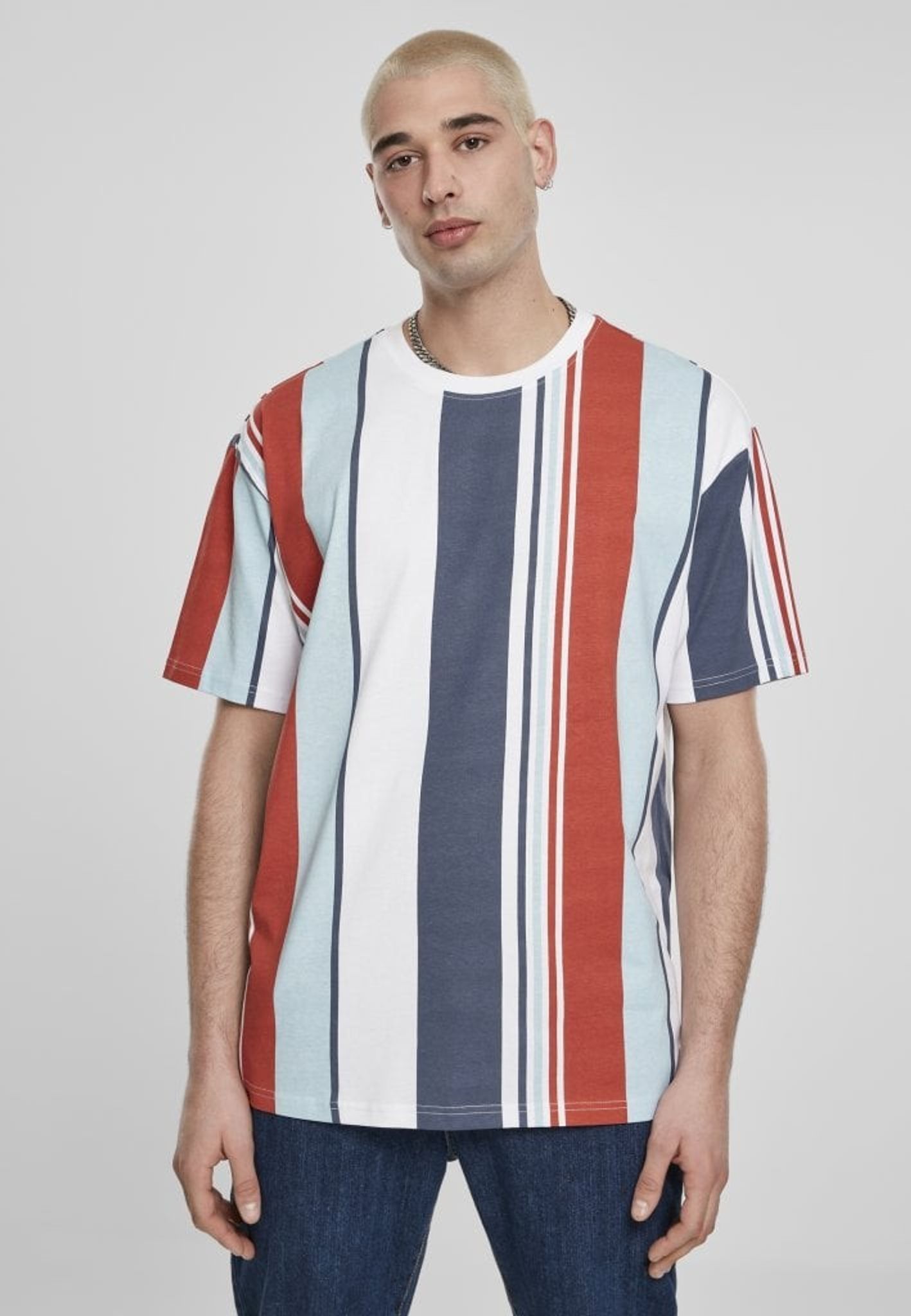 En flerfärgad randig T-shirt i rymlig oversize-modell.