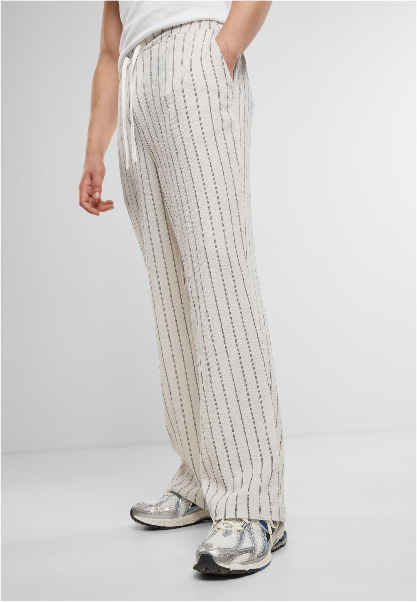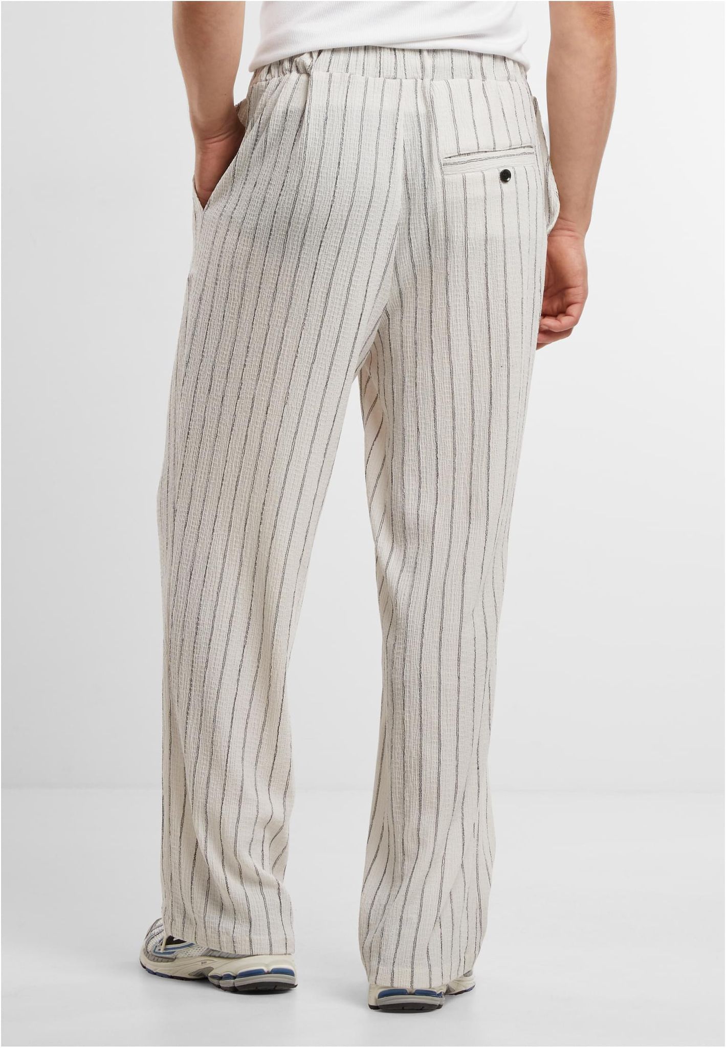 Upplev en avslappnad stil med de randiga crinkle resortbyxorna, skapade för den som värdesätter komfort och mångsidighet. Byxorna har en lös passform som ger en lätt och ledig silhuett, perfekt för avkopplande tillfällen.