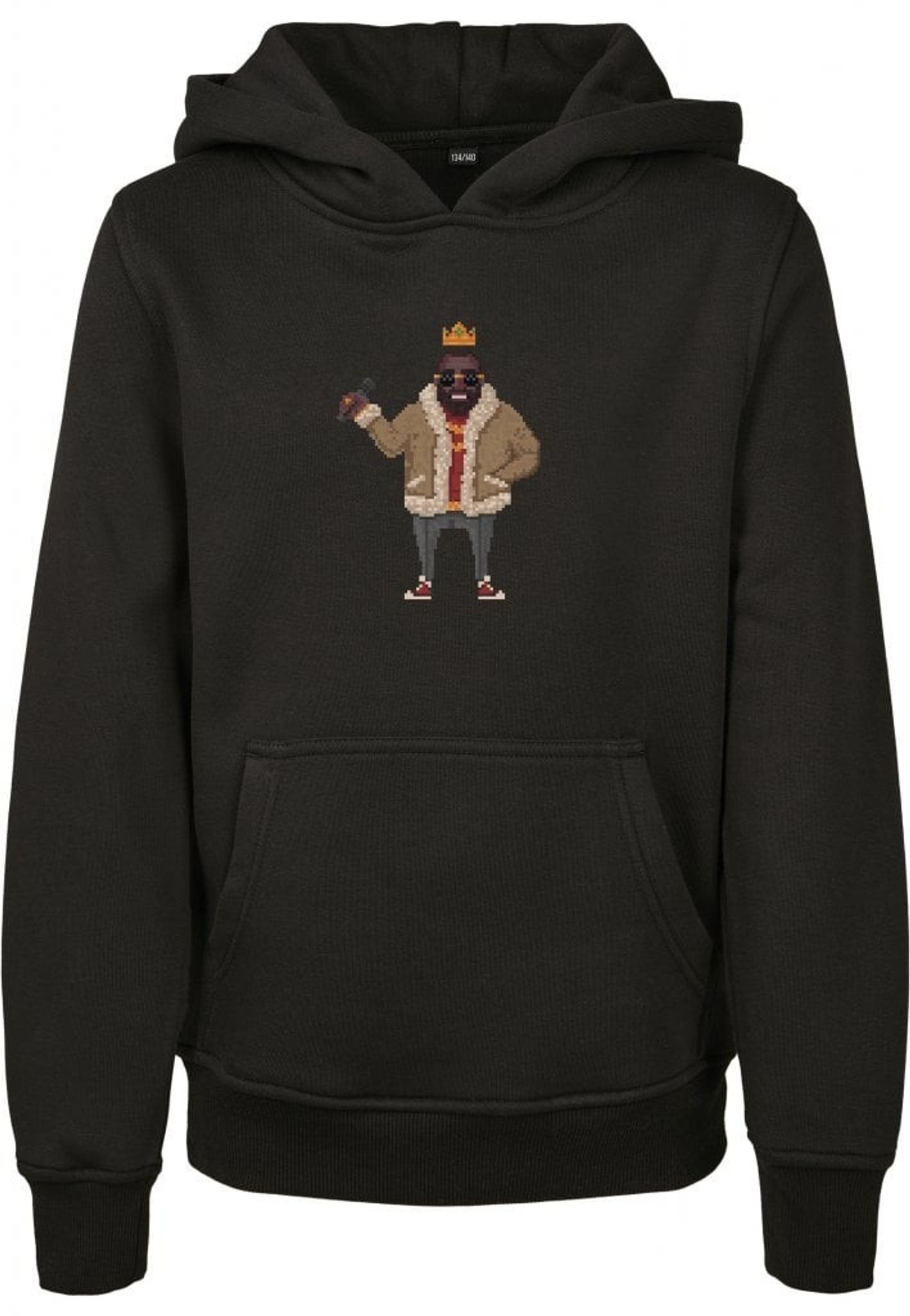 En tuff hoodie med en rappare i krona och pälsklädd jacka.