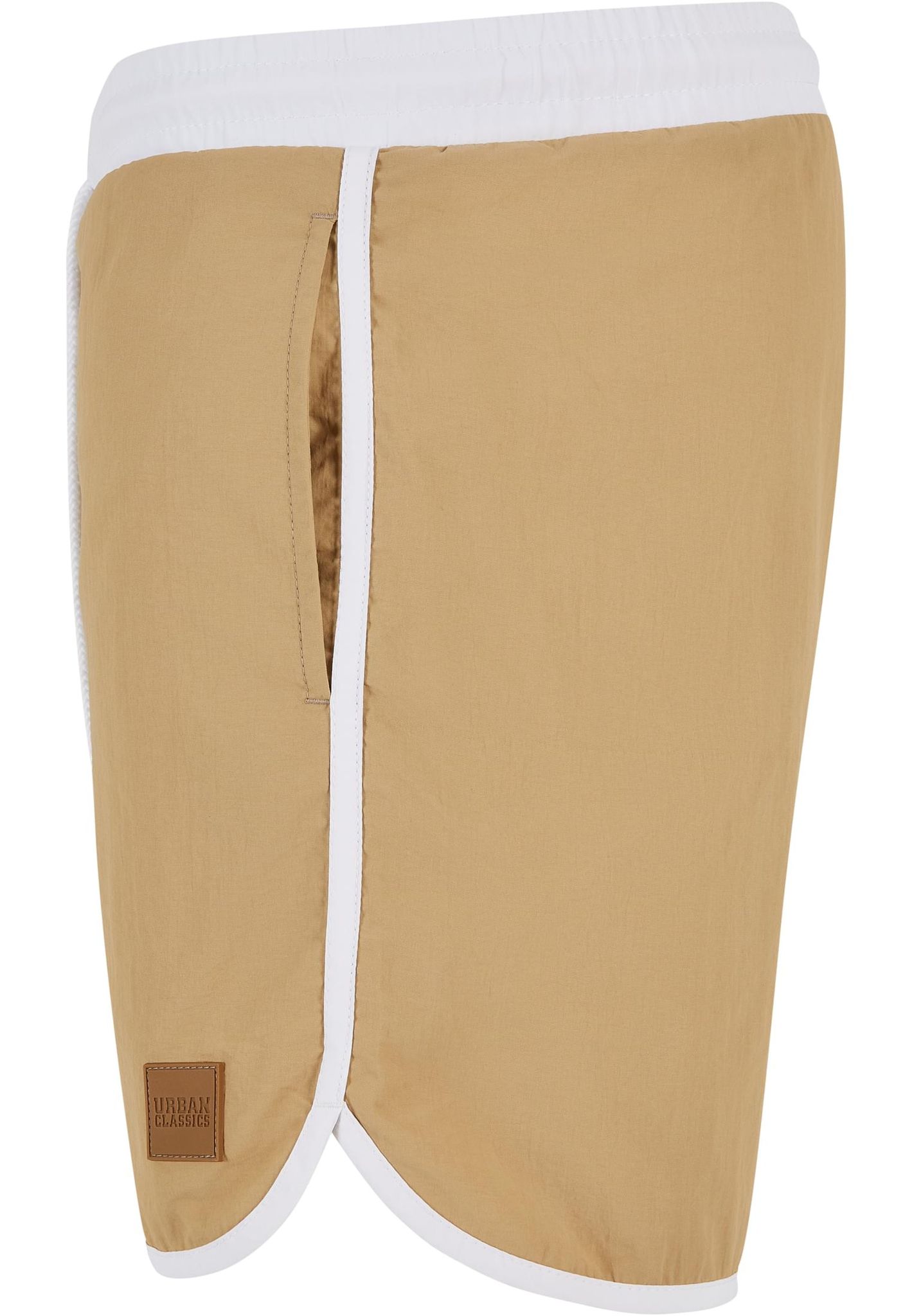 Stilrena retro-badshorts i vit och beige med bekväm passform och praktiska fickor.