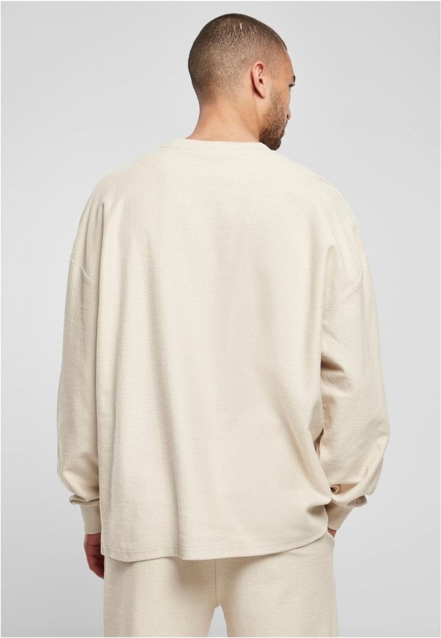 Upptäck Rib Terry Boxy Crew, en avslappnad longsleeve för män som förenar stil och komfort. Den boxiga passformen med breda, sänkta axlar och en uttalad rund hals ger en modern, urban look.
