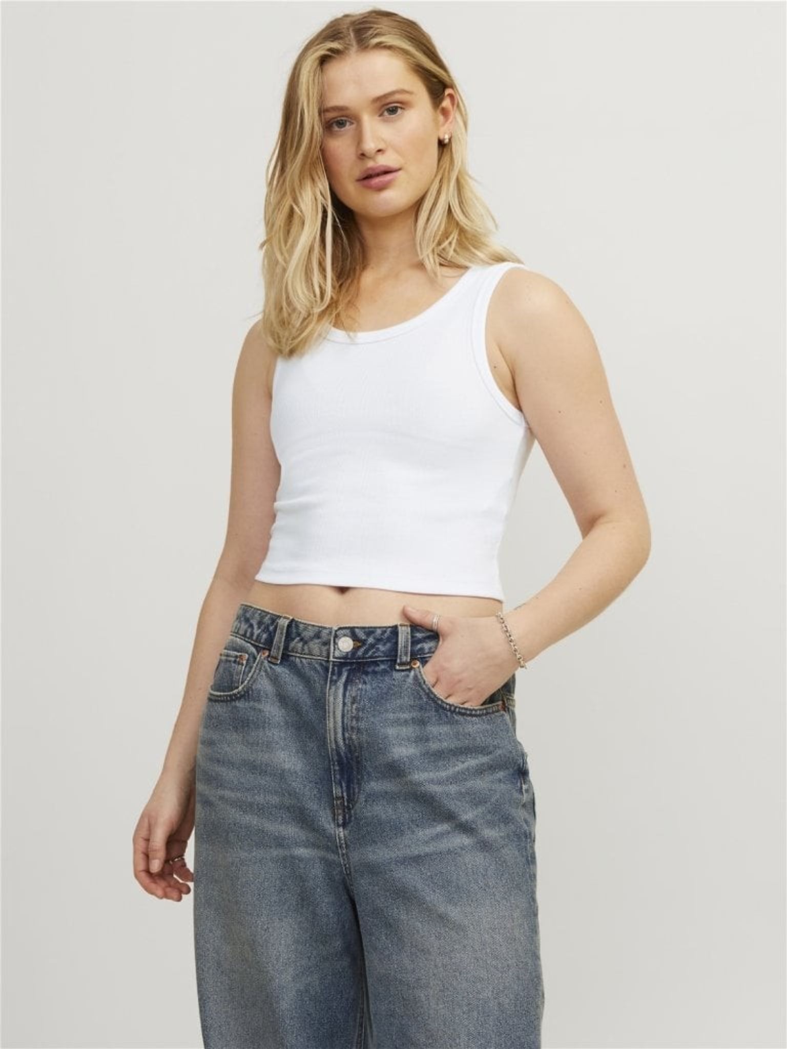 Det ribbade linnet i kort modell är perfekt för avslappnade och bekväma dagliga klädsel. Det är tillverkat i en cirkulär stickad kvalitet med en ribbad yta som ger en trendig och modern look.