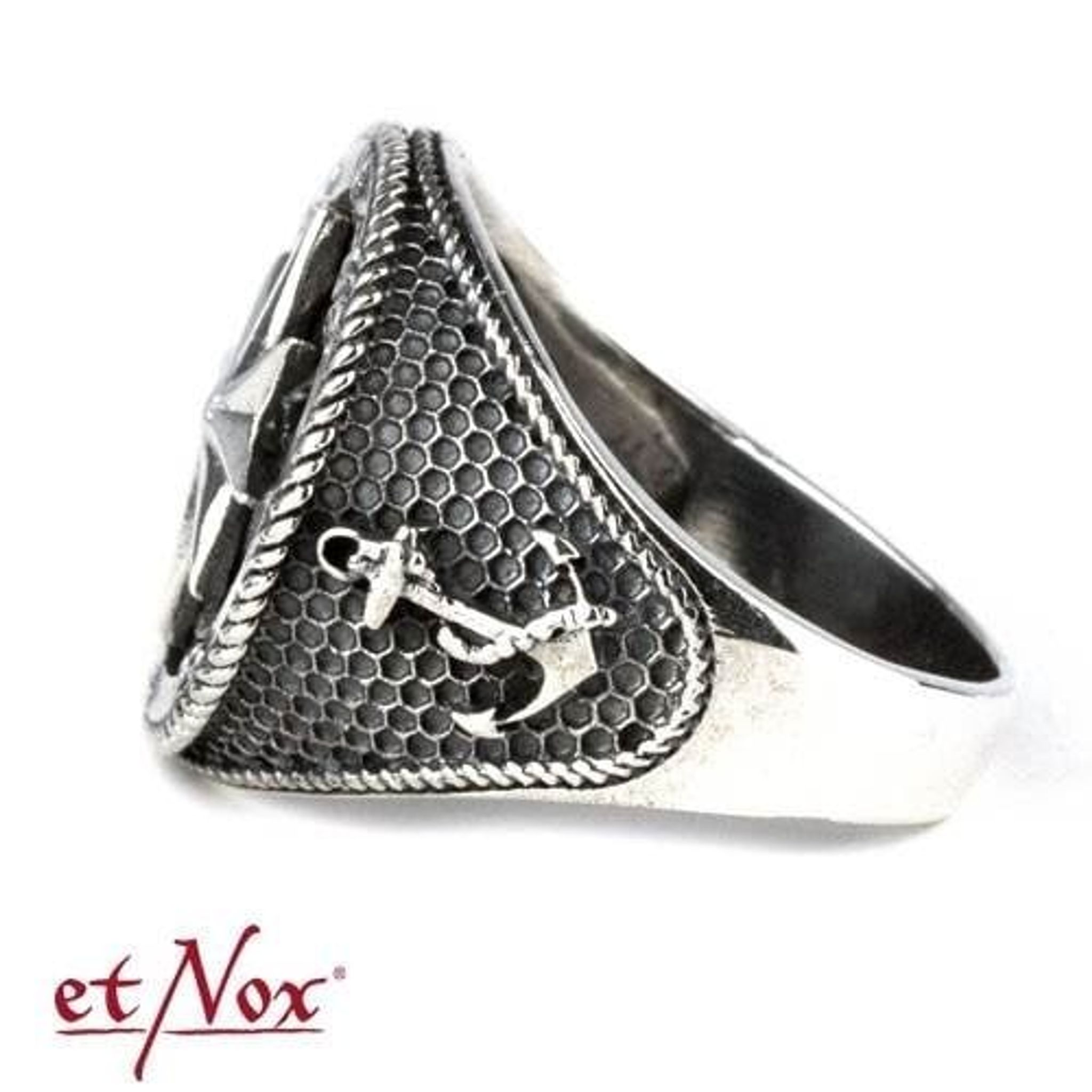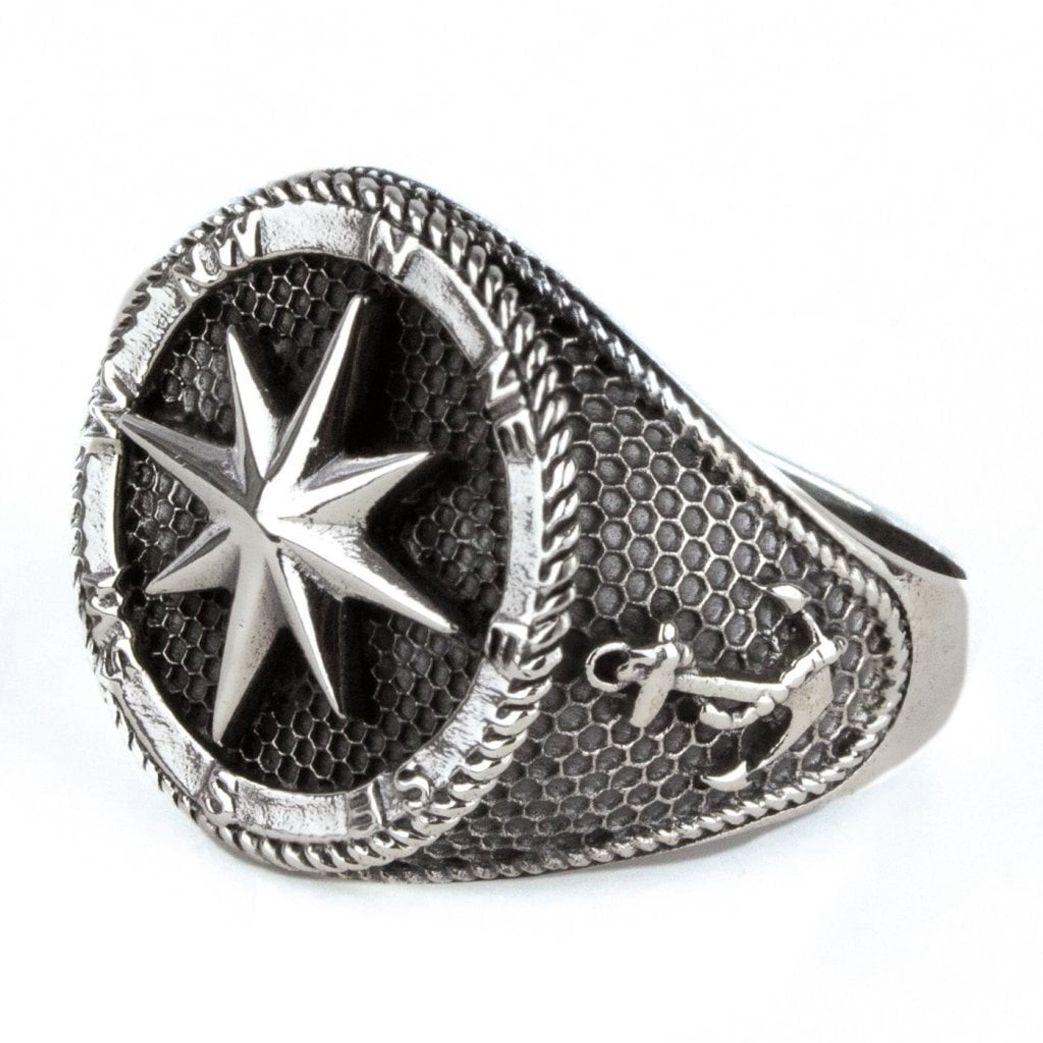Ring med kompass och ankare.