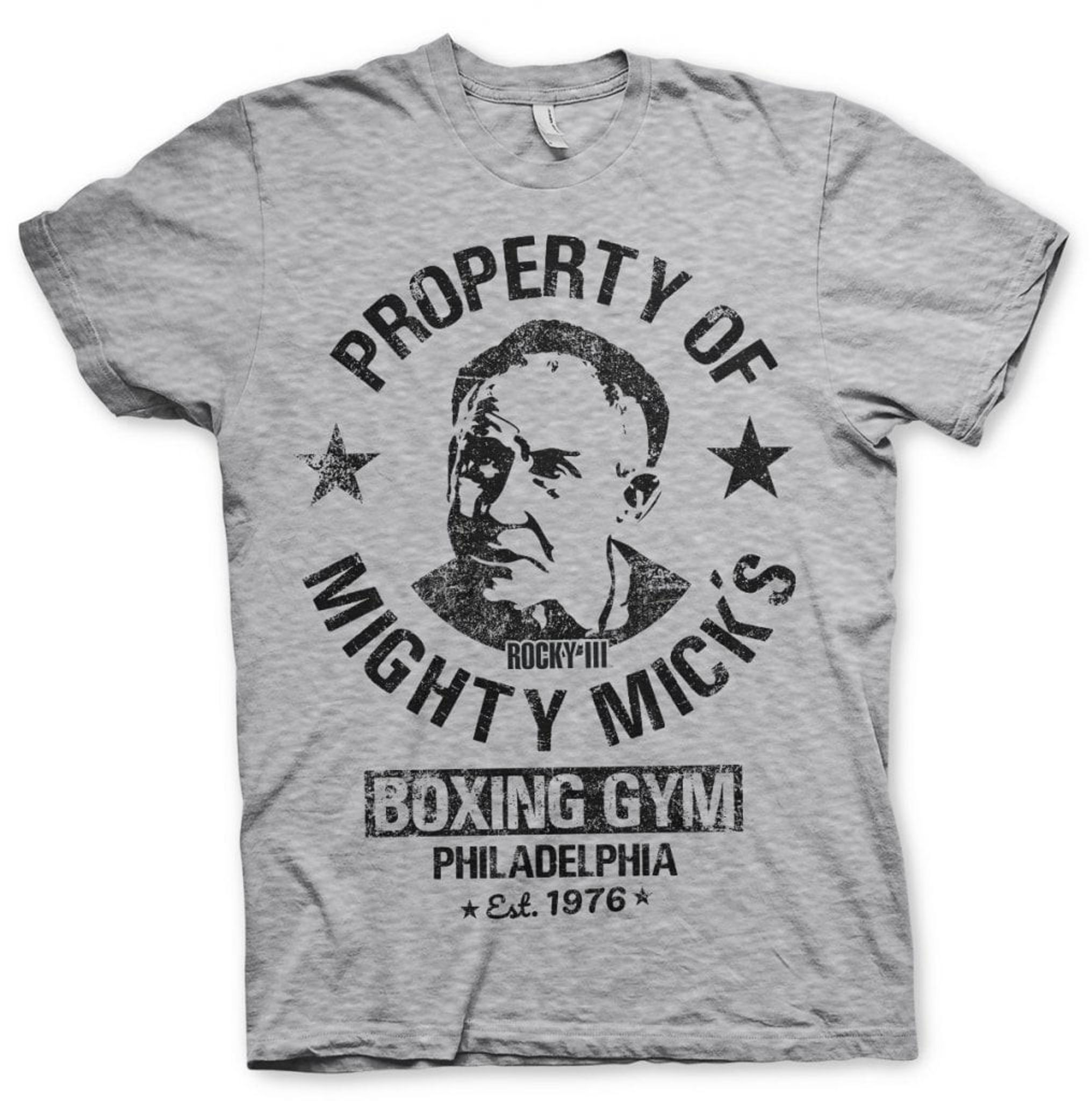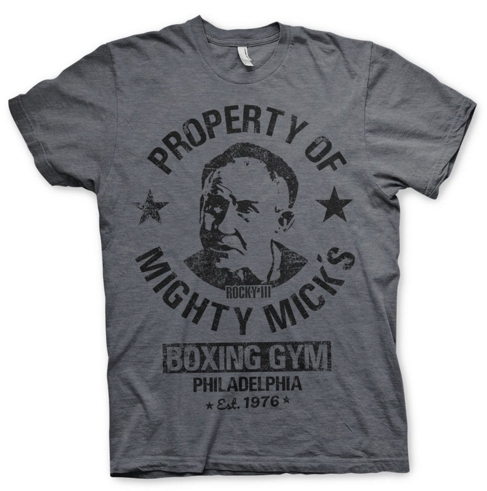 Med sitt klassiska tryck av den legendariska tränaren Rocky Balboa och hans legendariska hemmaboxninggym, Mighty Mick's, är denna t-shirt ett måste för alla fans av filmserien. Oavsett om du själv tränar boxning eller bara gillar att se på, kommer den här t-shirten definitivt göra dig till en vinnare i stilfrågor.