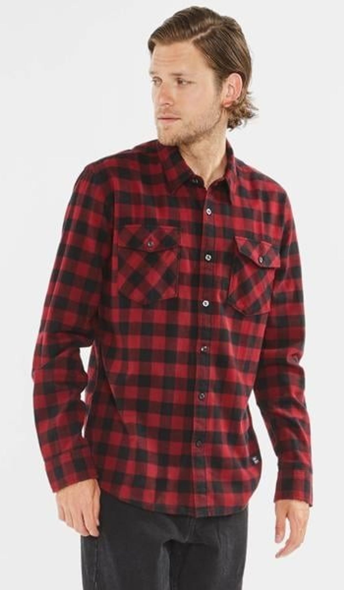 En riktigt skön flanellskjorta med röda och svarta nyanser. Tyget är enzymtvättat, vilket ger tyget en extra mjuk känsla.
