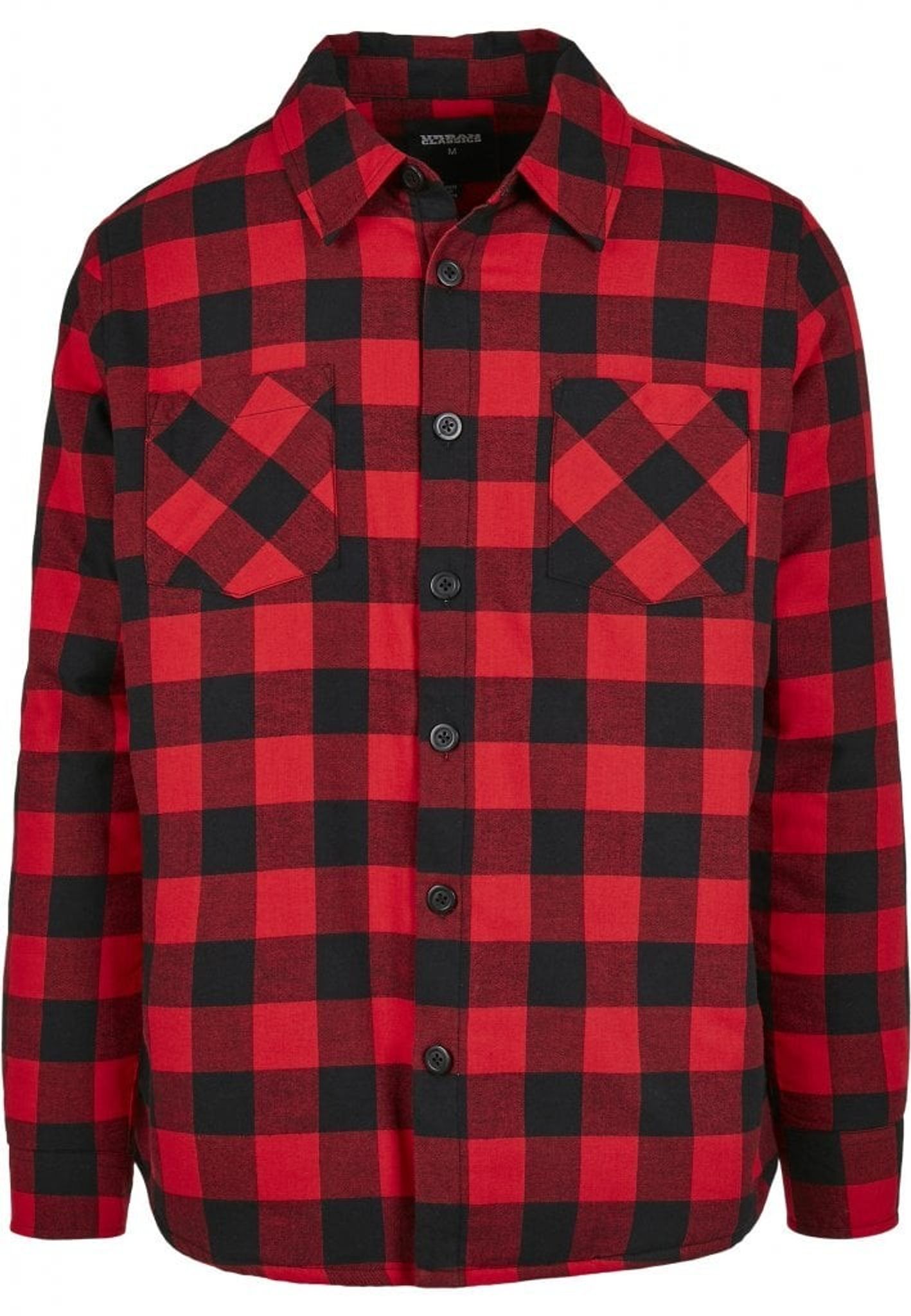 En vadderad rutig skjorta i färgerna rött och svart.