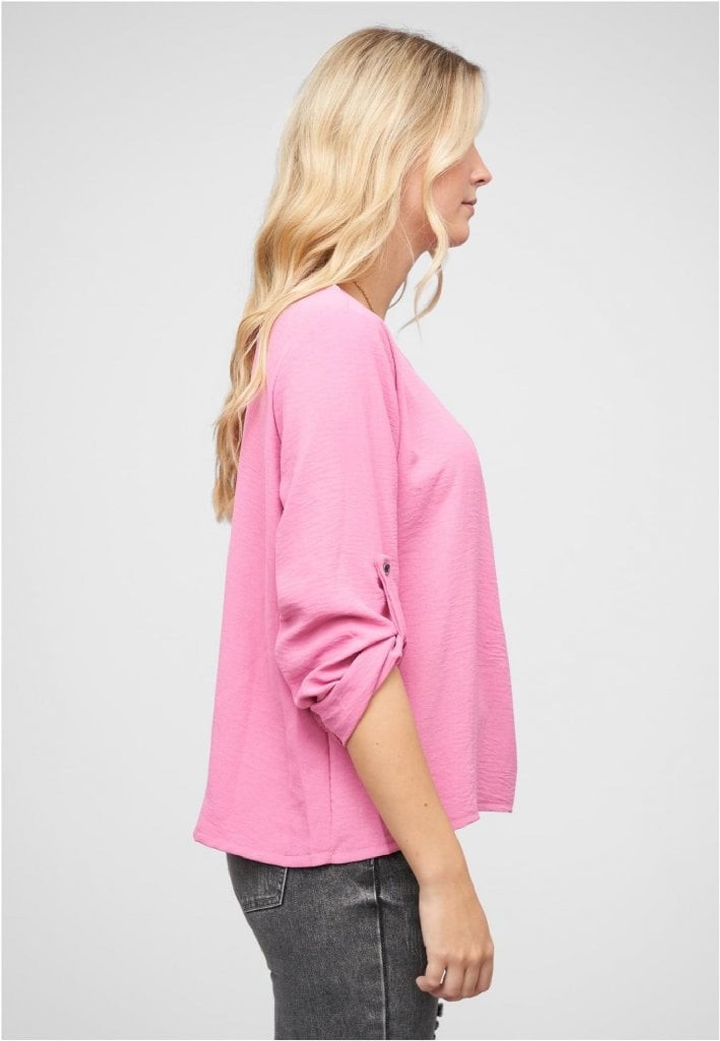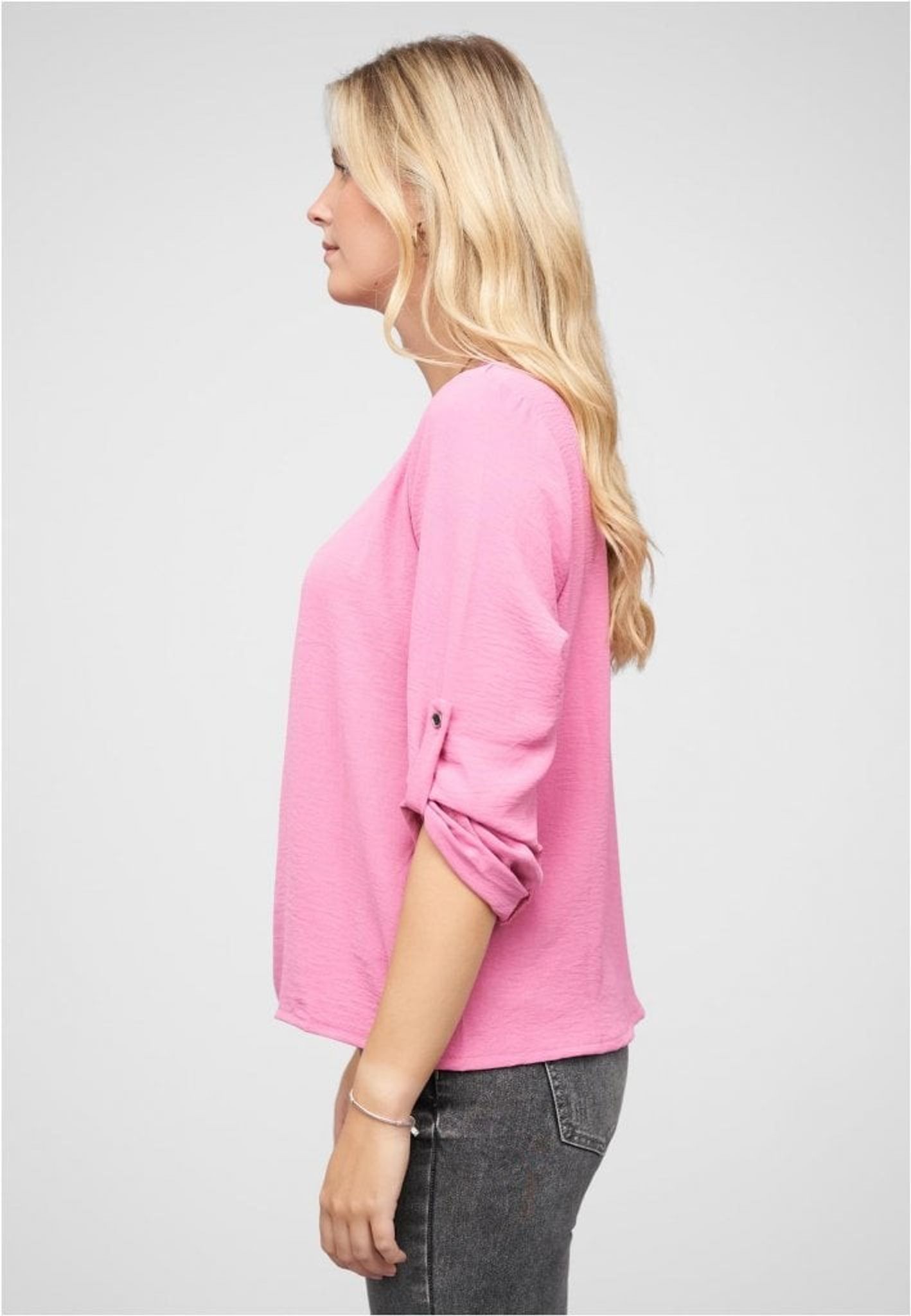 Välj vår rosa blus med krage för att lyfta din stil och känna dig både bekväm och elegant hela dagen.
