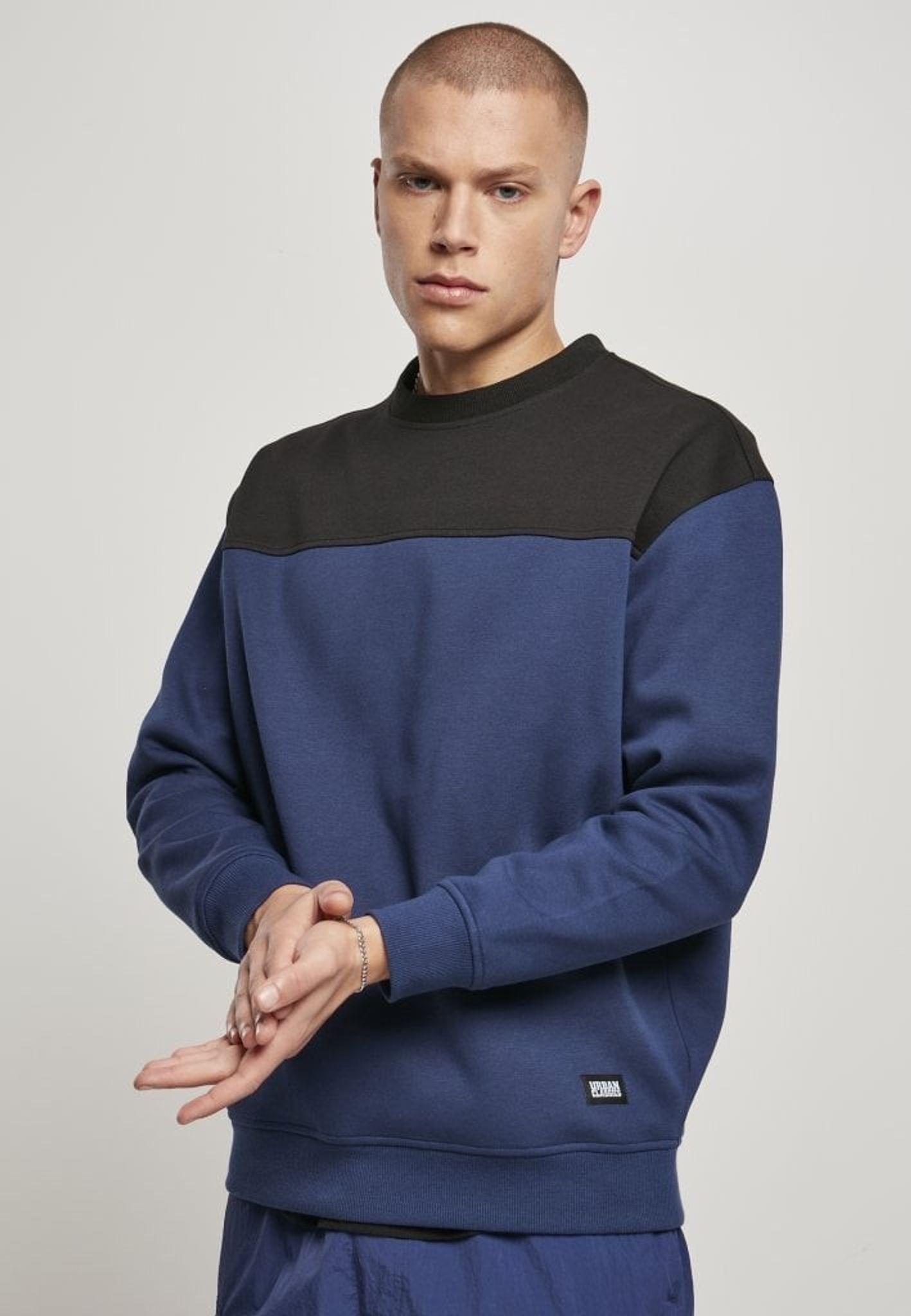 Tröjan finns i två färgställningar, svart/blå eller svart/khaki.